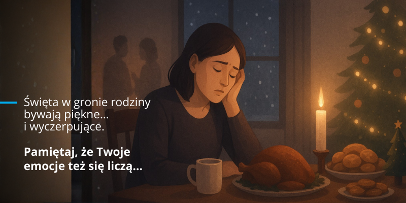 | | | | | Święta to czas rodzinny. Ten slogan przewija się wszędzie. Rzeczywiście, spędzamy ten czas z rodziną – bliższą bądź dalszą. Jako ludzie dorośli robimy to z własnej woli, bo chcemy, bo dobrze nam w gronie najbliższych. Ale czy na pewno? Nie podważam twoich motywacji, ale warto się zastanowić jak się czujesz po takich spotkaniach. Jeśli jesteś zmęczony psychicznie, Twój nastrój spadł i czujesz dziwne uczucie podobne do smutku to może to oznaczać, że spotkanie świąteczne wcale nie jest przyjemnym odpoczynkiem. Może się okazać, że robisz to z przyzwyczajenia, próbujesz sprostać czyimś oczekiwaniom, zrobić coś wbrew sobie „żeby nie gadali”. |