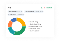 Easily add new feed or medicines, or restock existing inventory items anytime.