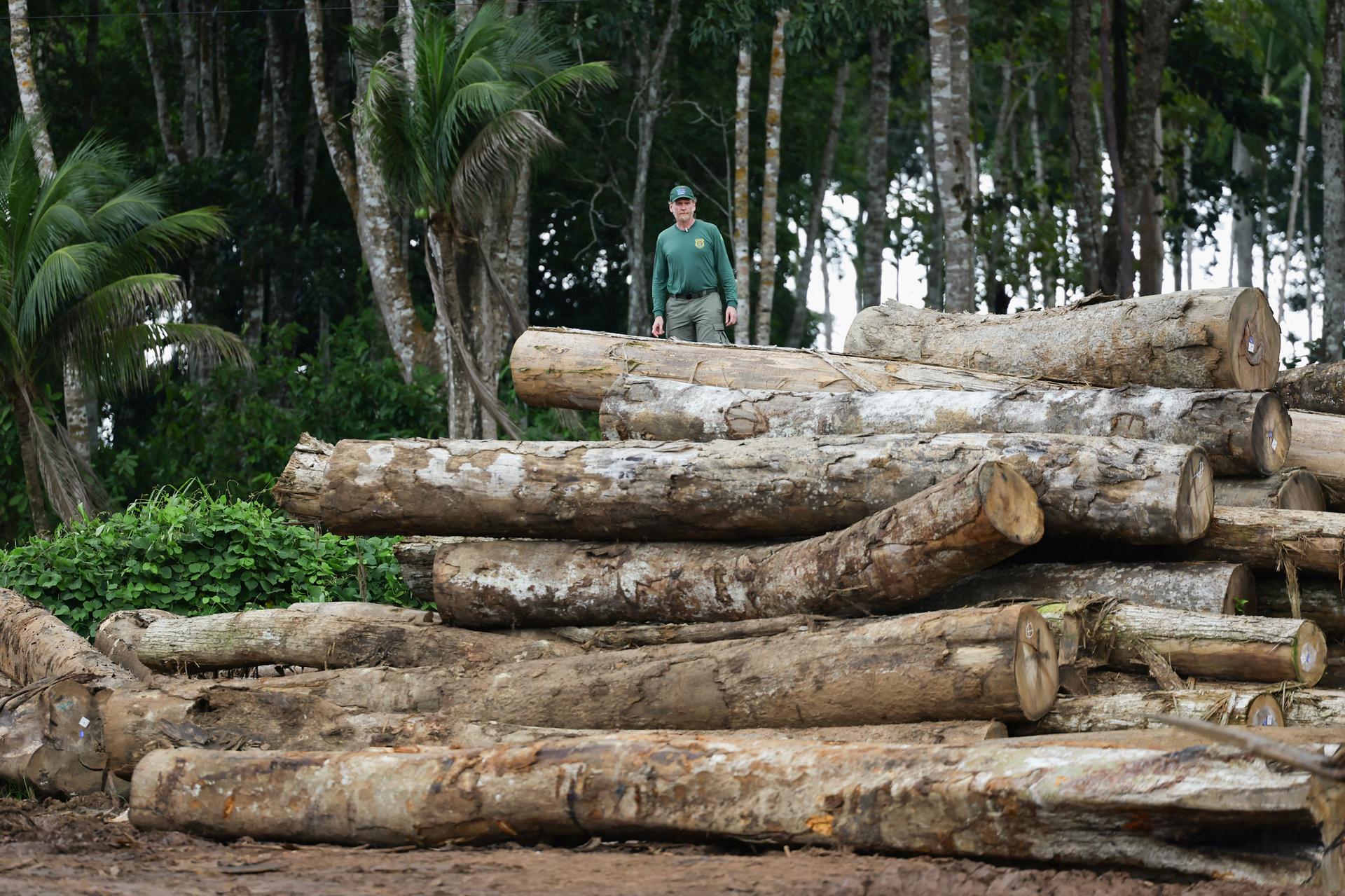 Jair Schmitt, director at IBAMA, inspects logs from the Amazon rainforest during an operation to combat deforestation, Porto Velho, Rondonia State, Brazil. REUTERS/Ueslei Marcelino |