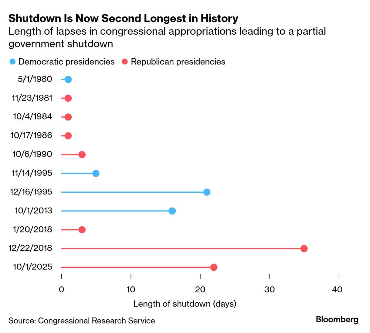 The US is hurtling toward the longest government shutdown on record because both Democrats and Republicans think they are winning with voters and President Donald Trump’s budget maneuvers have staved off some of the pain points that normally would increase pressure to end the standoff.