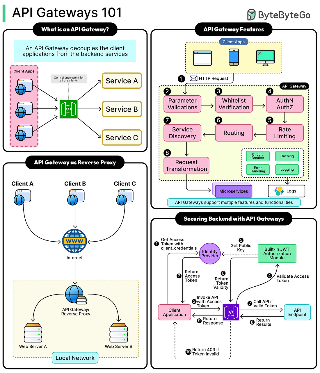 Latest articlesIf you’re not a subscriber, here’s what you missed this month. To receive all the full articles and support ByteByteGo, consider subscribing: Modern software systems rarely exist as a single, massive program anymore. A decade or two ago, most applications were built as monoliths. Everything from the user interface to business logic to database access lived inside one large codebase. This approach made development straightforward at first, but as applications grew in size and complexity, it became increasingly difficult to maintain and scale. A single change could impact the entire system, and deploying updates meant redeploying the whole application. To overcome these limitations, the industry gradually shifted toward a service-based architecture. Instead of one big program, systems were broken into smaller, independent services. Each service handles a specific function, such as user authentication, payments, or notifications. These microservices communicate with each other using APIs. The result was a more modular, flexible system that could be developed and deployed independently. However, the service-based architecture brought a new set of challenges. As the number of services grew, so did the number of client-to-service interactions. A simple client request (like displaying a user’s dashboard) might now require data from several microservices. Clients needed to know the location, authentication method, and request format for each service. When services changed or moved, clients also had to be updated. Managing these complexities became complex and error-prone. This is where the API gateway comes in. Think of the API Gateway as the entry point that sits between clients and the internal services. Instead of calling multiple services directly, the client sends requests to the API gateway, and the gateway takes care of the rest. Over time, API Gateways have evolved into full-fledged management platforms. They don’t just route traffic, but also handle authentication and authorization, manage multiple API versions, transform protocols and payloads, and provide analytics for monitoring API performance. In this article, we will look at API gateways in detail, along with their architecture and features. What is an API Gateway?... |