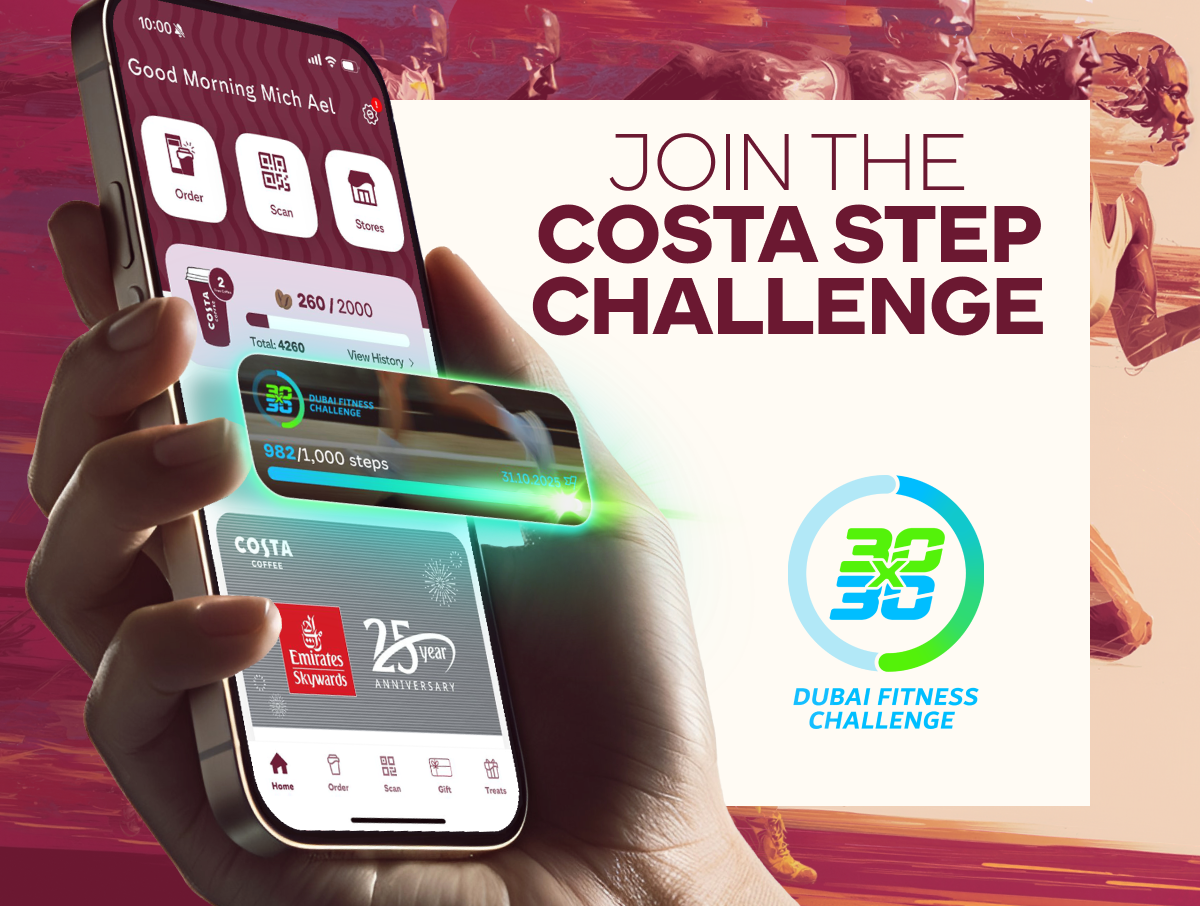 Walk 10,000 steps a day (70,000 steps weekly) and unlock a weekly Costa treat to keep you fuelled all month long!