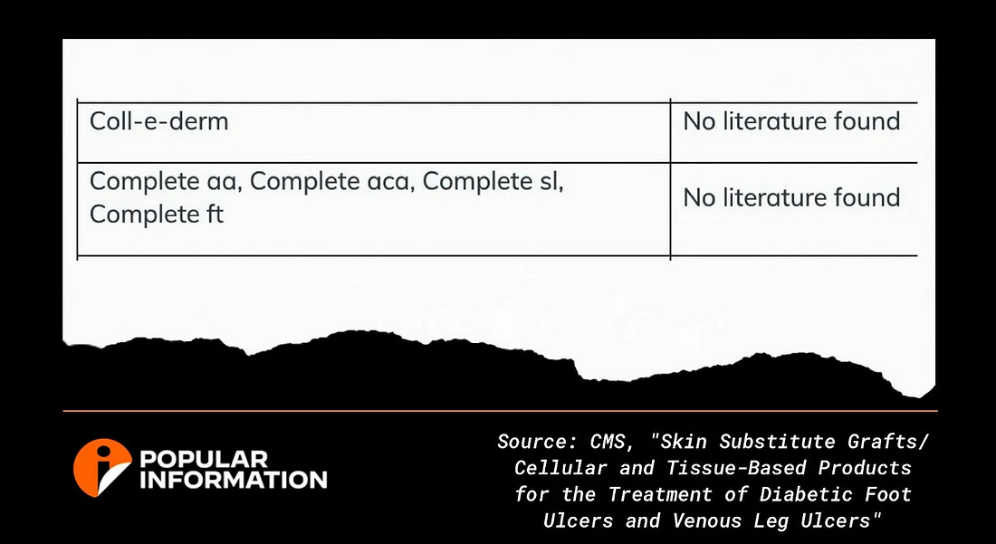 Welcome to Popular Information, a newsletter dedicated to accountability journalism. Earlier this year, Popular Information broke the news that Extremity Care – a company that sells bandages to Medicare for thousands of dollars per square inch – donated $5 million to MAGA Inc., President Trump’s super PAC, on February 24. Six days later, Trump blasted a pending Biden administration rule that would have barred Medicare from covering Extremity Care’s products. The Biden rule was initially scheduled to take effect in February 2025, but was delayed by the Trump administration until April 13 as part of a blanket regulatory freeze. On April 11, 40 days after Trump’s post, the Centers for Medicare & Medicaid Services (CMS) announced the rule would be delayed until at least January 1, 2026, allowing Extremity Care to continue charging Medicare for its products. As that deadline approaches, Extremity Care has secretly donated $2.5 million toward the construction of a new White House ballroom, a top priority for Trump. The White House publicly released a list of donors last month, but Extremity Care was not included. According to The New York Times, the company was permitted to donate anonymously. CMS, in preparation for implementing the Biden rule, determined that 17 skin substitute products have proven their effectiveness in scientifically valid studies. The agency found that Extremity Care products lack scientific backing. One of Extremity Care’s products, Coll-e-Derm, costs $11,051.10 per square inch. Another Extremity Care product, CompleteFT, costs $7,812.38 per square inch. Skin substitute products went from a negligible source of Medicare spending in 2014 to $256 million in 2019, and then surged to more than $10 billion in 2024. As a result of the Trump administration’s delay of the rule, Medicare spending on skin substitutes “is projected to reach $15.4 billion by the end of 2025.” “The deliberate misuse of skin substitutes is endangering America’s seniors and pricing schemes are undermining the integrity and the long-term sustainability of Medicare,” said Emily Brower, CEO of the National Association of Accountable Care Organizations. “If we are truly committed to combating fraud, waste, and abuse, we must put an end to this exploitation by bad actors.” Many of the products with scientific backing are much less expensive than those offered by Extremity Care. Oasis wound matrix, a product that has proved effective in scientific research, charges Medicare $75.51 per square inch. Another scientifically proven product, Apligraf, charges $195.58 per square inch. On July 14, the Trump administration announced a new proposed Medicare rule for skin substitutes. The new proposal would cap payments for skin substitutes at $806 per square inch. This is lower than what many companies, including Extremity Care and Legacy, currently charge, but it would not limit coverage to products that are scientifically proven to be effective. Further, many of those proven products are available for far less than $806 per square inch. The Medicare Access to Skin Substitutes Coalition (MASS Coalition), which represents Extremity Care and others in the industry, also opposes the new rule. In a September 12 letter to CMS, the MASS Coalition claims that $806 per square inch “does not cover the many costs incurred by manufacturers to deliver these products to providers who administer them to patients.” They suggest that if the rule goes into effect, manufacturers may stop selling their products, and “access to these critical treatments will be seriously compromised.” Instead, the industry is proposing a payment cap as high as $6,277.41 per square inch, plus additional payments for “innovative” products. They cite a paper by Dr. William Tettelbach and published in the Journal of Wound Care, which recommends a reimbursement cap of $3,083.86 to $4,541.93 per square inch. The letter does not mention that Tettlebach has been paid by Extremity Care, a subsidiary of Tiger BioSciences, to conduct research. In addition to writing the letter, the skin substitute industry has had an opportunity to press their case with the Trump administration in person. On October 21, Extremity Care CEO Oliver Burckhardt attended an exclusive dinner with Trump for top donors on the Rose Garden patio. While some news outlets are turning to AI to reduce reporting time and cut costs, Popular Information is taking the opposite approach. This newsletter is doubling down on in-depth journalism and original research to uncover new information. That’s why you’ll find news and analysis here that you will not find anywhere else. We do not believe in shortcuts. We believe in publishing stories that matter. If you value this kind of reporting, you can support it by becoming a paid subscriber. If you have a news tip, please contact us via Signal at juddlegum.47. We will maintain your anonymity. |