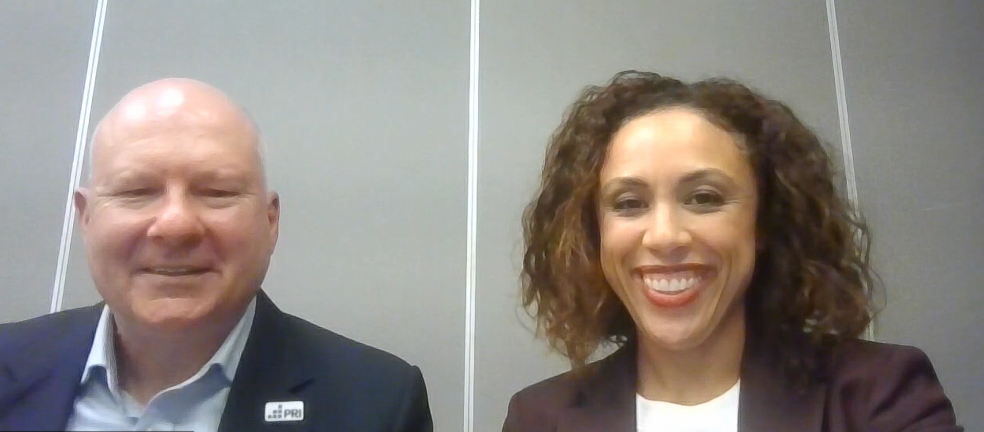 PRI CEO David Atkin (left) and incoming interim CEO Cambria Allen-Ratzlaff, shown during our video interview this week.