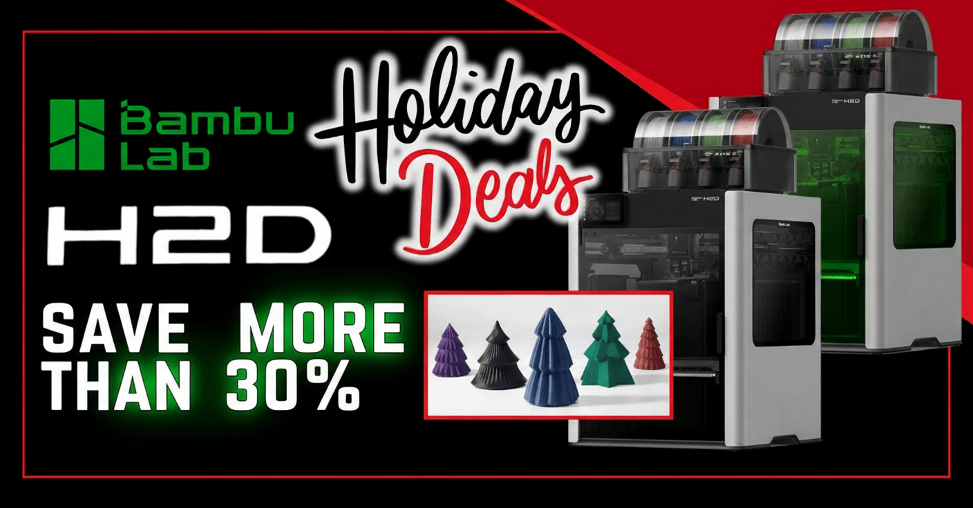 This holiday season, we're offering massive savings on Bambu Lab's revolutionary H2D Dual Head 3D Printer systems.