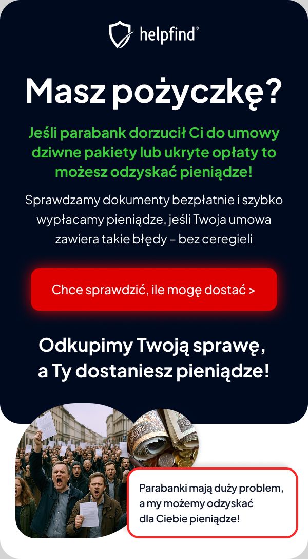 Wysłano na zlecenie:Helpfind sp. z o.o. z siedzibą w Ostrowie Wielkopolskim przy ul. Kazimierza Pułaskiego 11, 63-400 Ostrów Wielkopolski, wpisaną do Rejestru Przedsiębiorców w Sądzie Rejonowym Poznań – Nowe Miasto i Wilda w Poznaniu IX Wydział Gospodarczy pod numerem KRS: 0000385405, NIP: 6222763569, REGON: 301735830, o kapitale zakładowym w kwocie 50 000 zł, wpłaconym w całości.