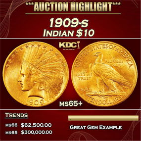 1909-s Gold Indian Eagle $10 grades ms65+. Great Gem Example, STUNNING coin, even nicer in person.