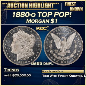 1880-o TOP POP! Morgan Dollar $1 grades ms65 DMPL. Much better date, very rare to see a DMPL example like this.