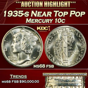 1935-s Near Top Pop Mercury Dime 10c grades ms68 FSB. Tied finest known in Full Split Bands. Killer Mercury.