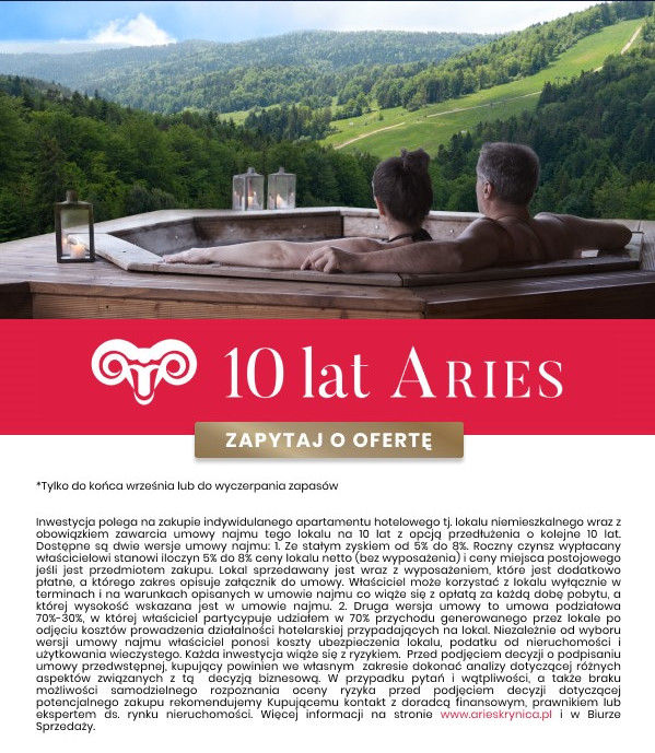 Wiadomość wysłana na zlecenie:ARIES RESIDENCE KRYNICA Sp. z o.o. ul. Poleczki 23 02-822 Warszawa NIP: 5213786866 KRS: 0000687603 REGON: 367673393 Wysokość kapitału zakładowego 1 - 5 000,00 ZŁ SĄD REJONOWY DLA M.ST. WARSZAWY W WARSZAWIE, XII WYDZIAŁ GOSPODARCZY KRAJOWEGO REJESTRU SĄDOWEGO