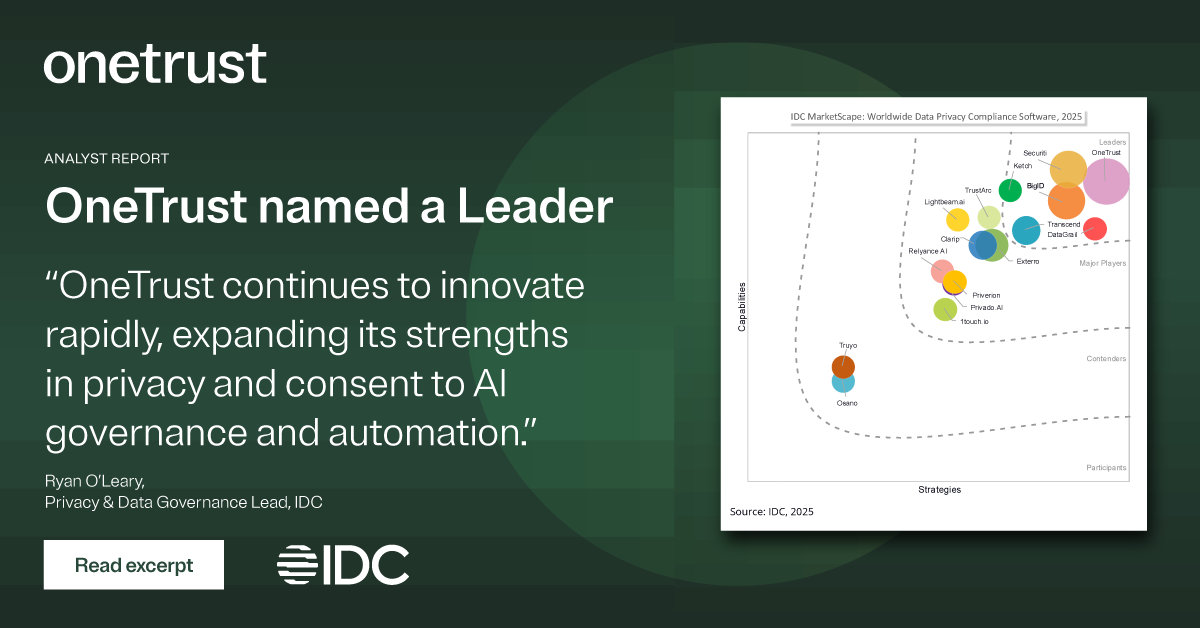OneTrust has been named a Leader in the IDC MarketScape: Worldwide Data Privacy Compliance Software 2025 Vendor Assessment.