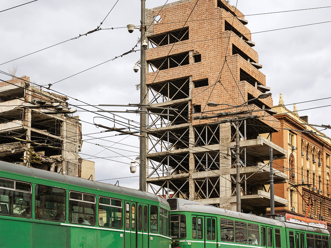 But what are they protecting? It is a site that consists of crumbling concrete, shattered windows and twisted metal. The ruins have offered the people of Belgrade a daily reminder of wartime ever since. However, it also provides a warped welcome to visitors of the city, whose route often takes them directly past the bombed-out buildings.
