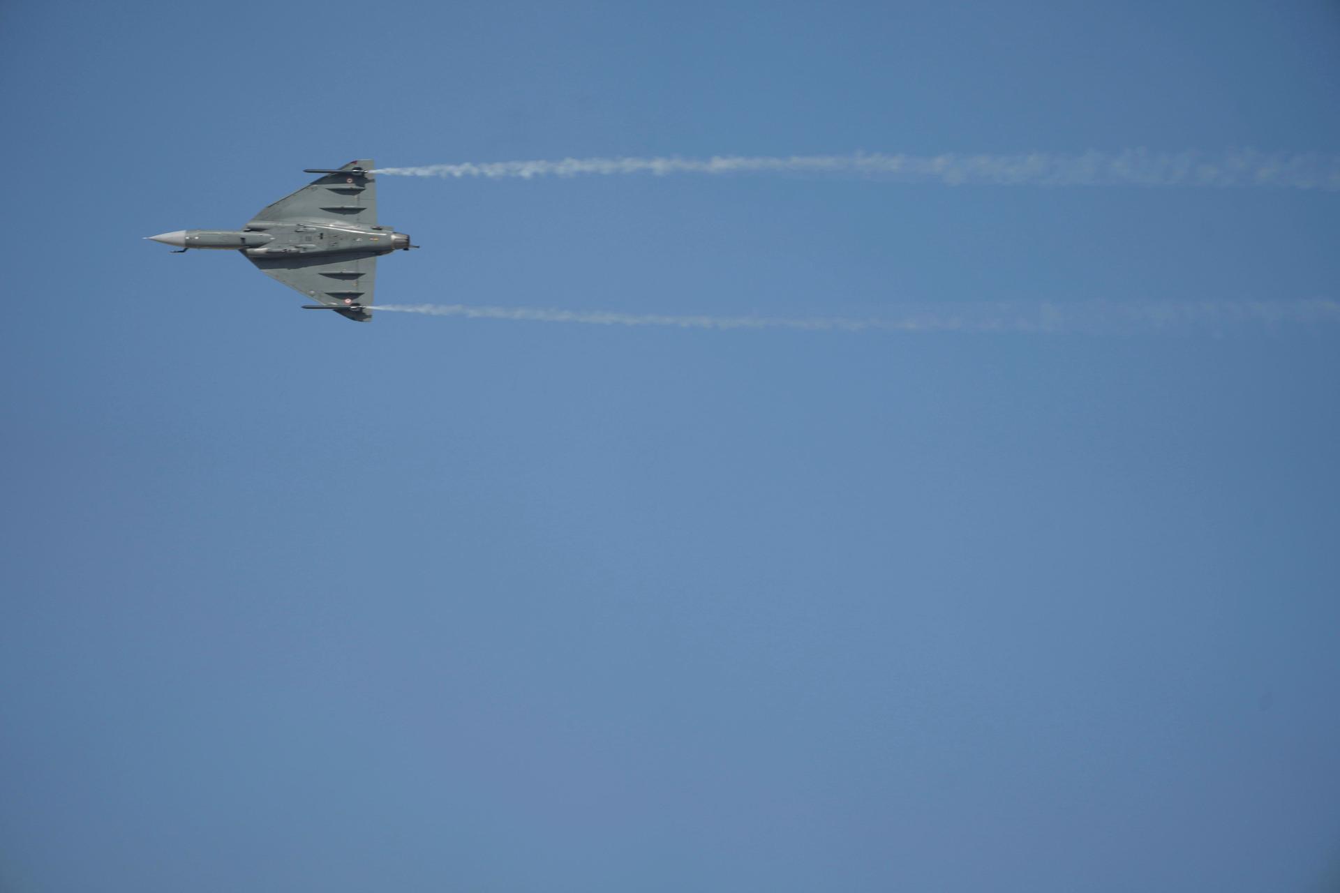 The Indian HAL Tejas during a demonstration moments before crashing at the Dubai Air Show, at Al Maktoum International Airport at Dubai World Central, Dubai, United Arab Emirates on Friday. (AP Photo/Jon Gambrell) |