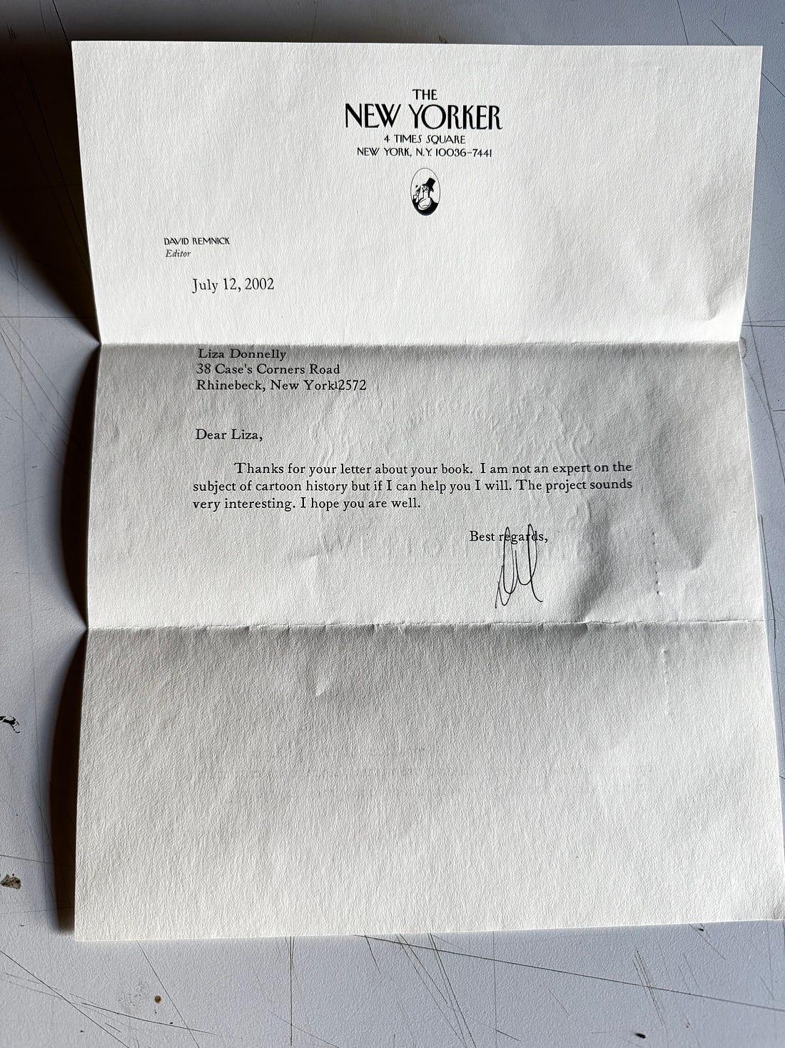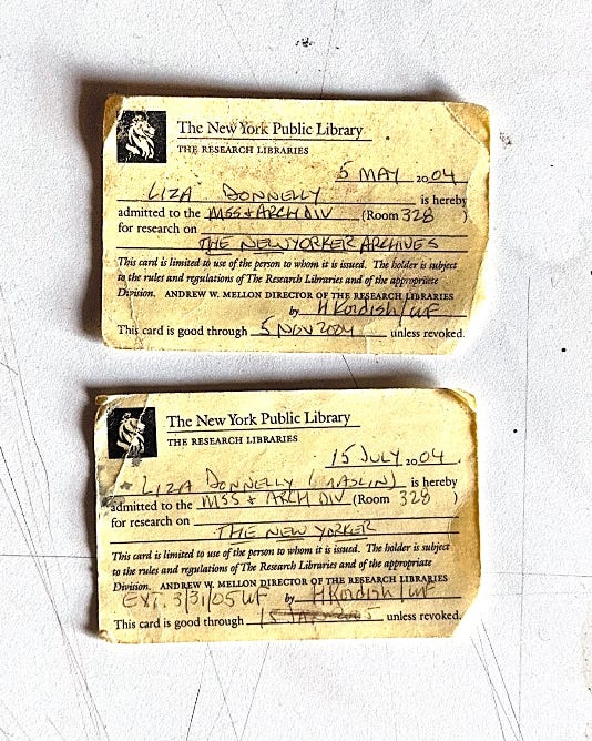 Interestingly, the New York Times has a lot of news about Jeffrey Epstein on its homepage website today. First and foremost: a really good editorial, that walks the reader through all that has gone on, but puts forth a strong opinion about the importance of not letting the Epstein please drift away. Here is the NY Times oped piece on Epstein. I recommend reading it. Then the Times has a slideshow of photographs released by the Democrats of the Epstein estate of Eptein’s estate on one of the islands he owned. They are hard to look at; because when I did, I imagined the horrors that happened in those rooms, and the lives destroyed by privileged men. Additionally, the paper reports that Ghislaine Maxwell, the longtime companion of Jeffrey Epstein who is serving a 20-year prison sentence for sex trafficking, plans to ask a court to release her. Her request gave no reasons as to why she should be released. She’s already been moved to a less secure and more cushy prison, which upset many because of the horrific crimes that she committed. Why this is coming now is anyone’s guess--part of me wonders if it is a set up for Trump to pardon her. If he were to do that, it would cause an incredible uproar across party lines. I think it would be immoral, and stupid to do that. But good for Democrats. There was a special election in Tennessee yesterday, and while the GOP won this house seat, they did not win by a very large margin. This is something to notice, because the race was in deep Trump country, where Trump won by more than 20 percentage points in the past. This special election is an example of a trend lately where even when the Republicans win, they are winning by far less. Trump is driving Democrats to the polls to vote against him. That’s all the news I have for today. I want to share some images of something I’m working on right now. I was asked to speak at the New York Public Library in a few weeks about my research that I did at the library for my book Very Funny Ladies. I’m honored to speak there and I’m enjoying putting together the PowerPoint. These are the permission cards I had to get in order to do the research in the special collections room. The New Yorker archives are housed in the library, and you have to request boxes of material every day that you think might be of use. The librarians bring them up for you and you spend spend days going through the boxes in that special collections room. You never know what you’re going to find. It’s time consuming but it’s also very exciting. All this research was done before the Internet was readily available to the likes of me! Below is a letter that David Remnick wrote me, supporting me in writing the book. It was very kind of him. And this is a box of my research from my studio. When I did this research back in 2004 for the first edition of my book, it was one of the most interesting times of my career. I loved uncovering information from those boxes, living in the history of the magazine from its early years. I wanted to show you some letters that I read In some of the boxes, correspondance between a cartoonist and her editor….but I think legally I can’t do that, unfortunately! Anyway that’s it for me today thank you so much for being here. I hope you have a nice Wednesday evening! See you tomorow. You're currently a free subscriber to Seeing Things. For the full experience, upgrade your subscription. |