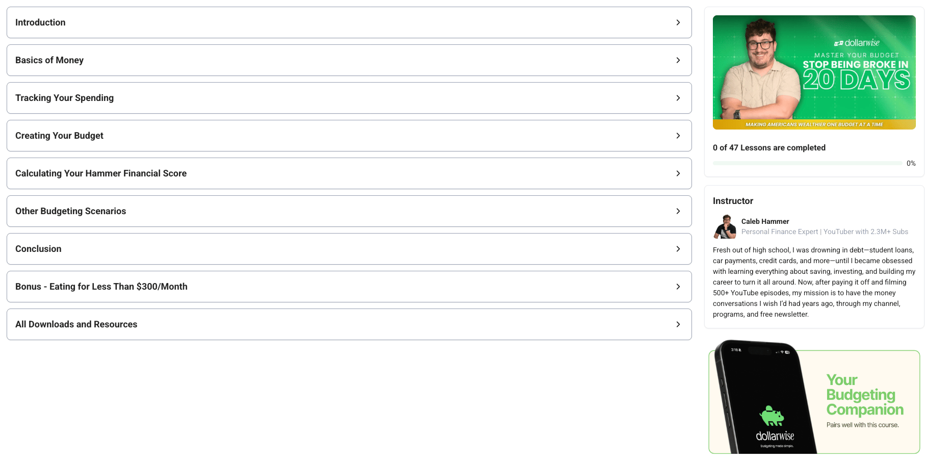 As you can see it’s broken up into different categories that expand into 47 individual lessons.