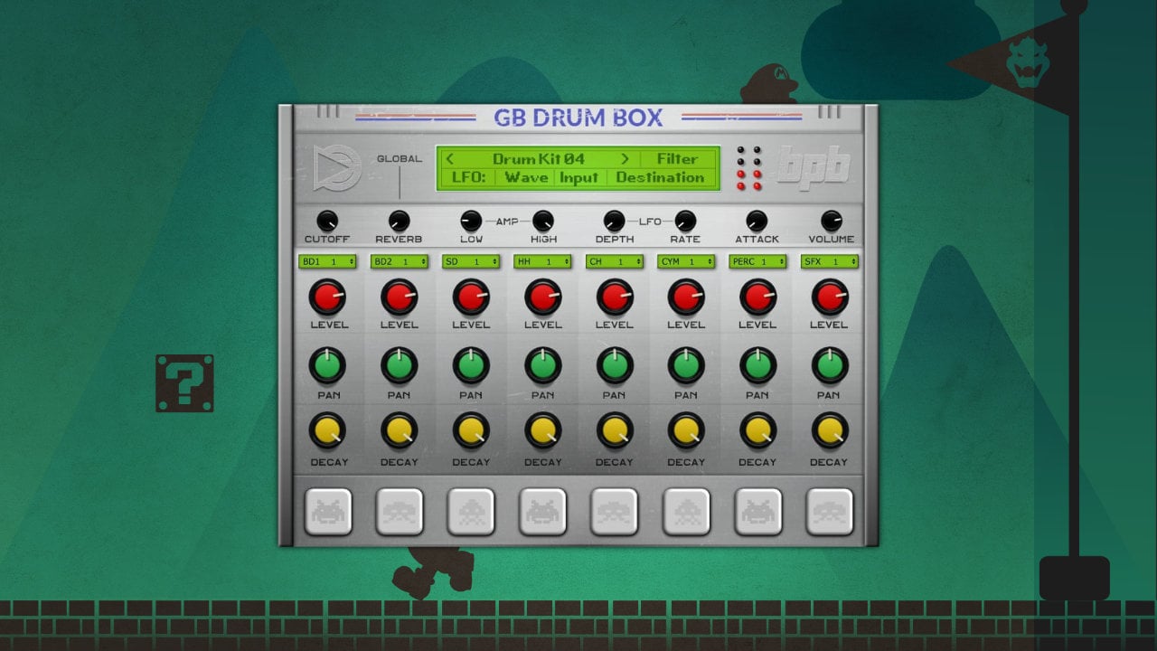 The first one was GB DrumBox, a drum plugin featuring twelve authentic Game Boy drum kits. Perfect for chiptune, video game music, and 8-bit inspired drum programming, GB DrumBox originally launched in November 2019.