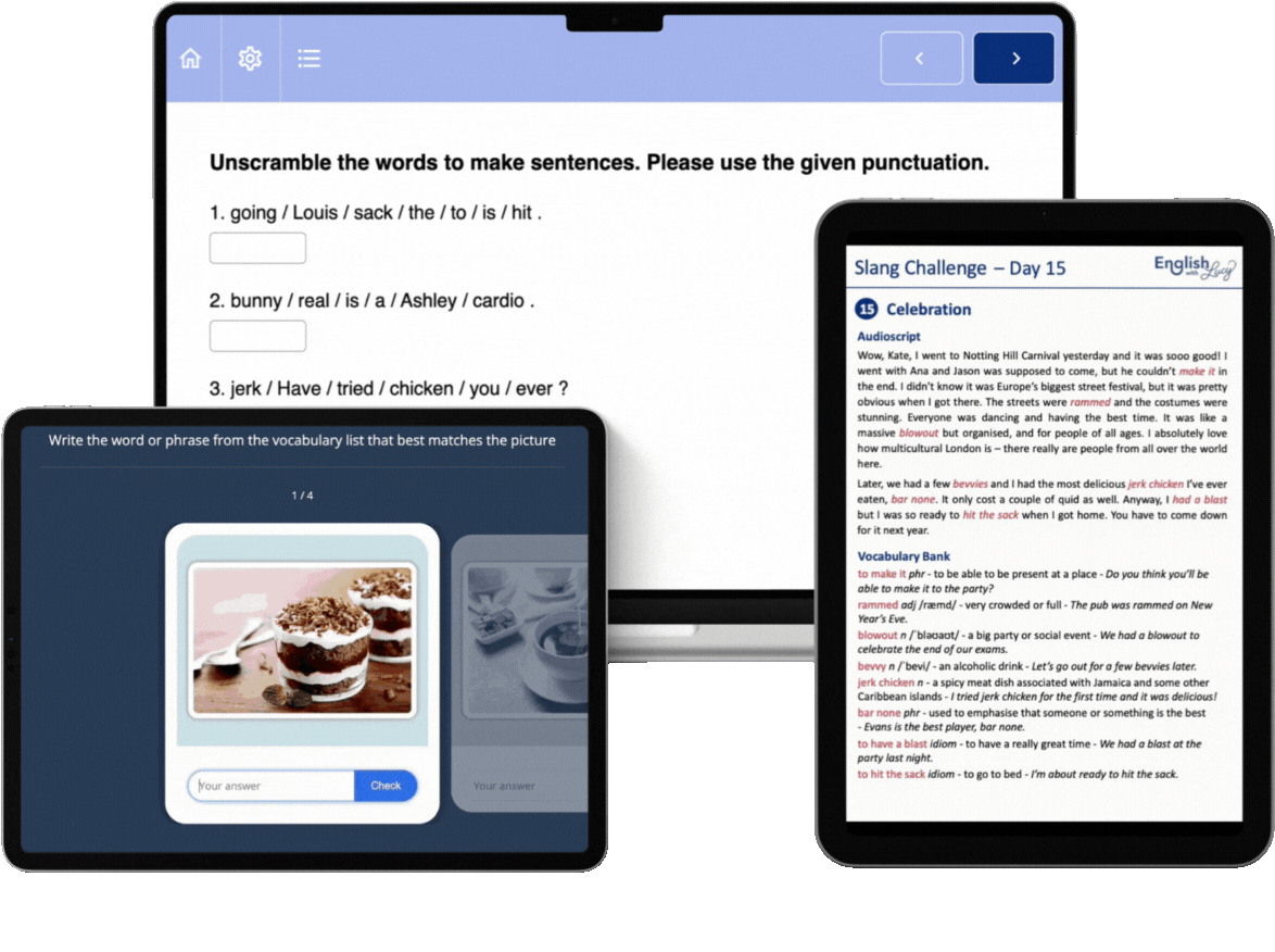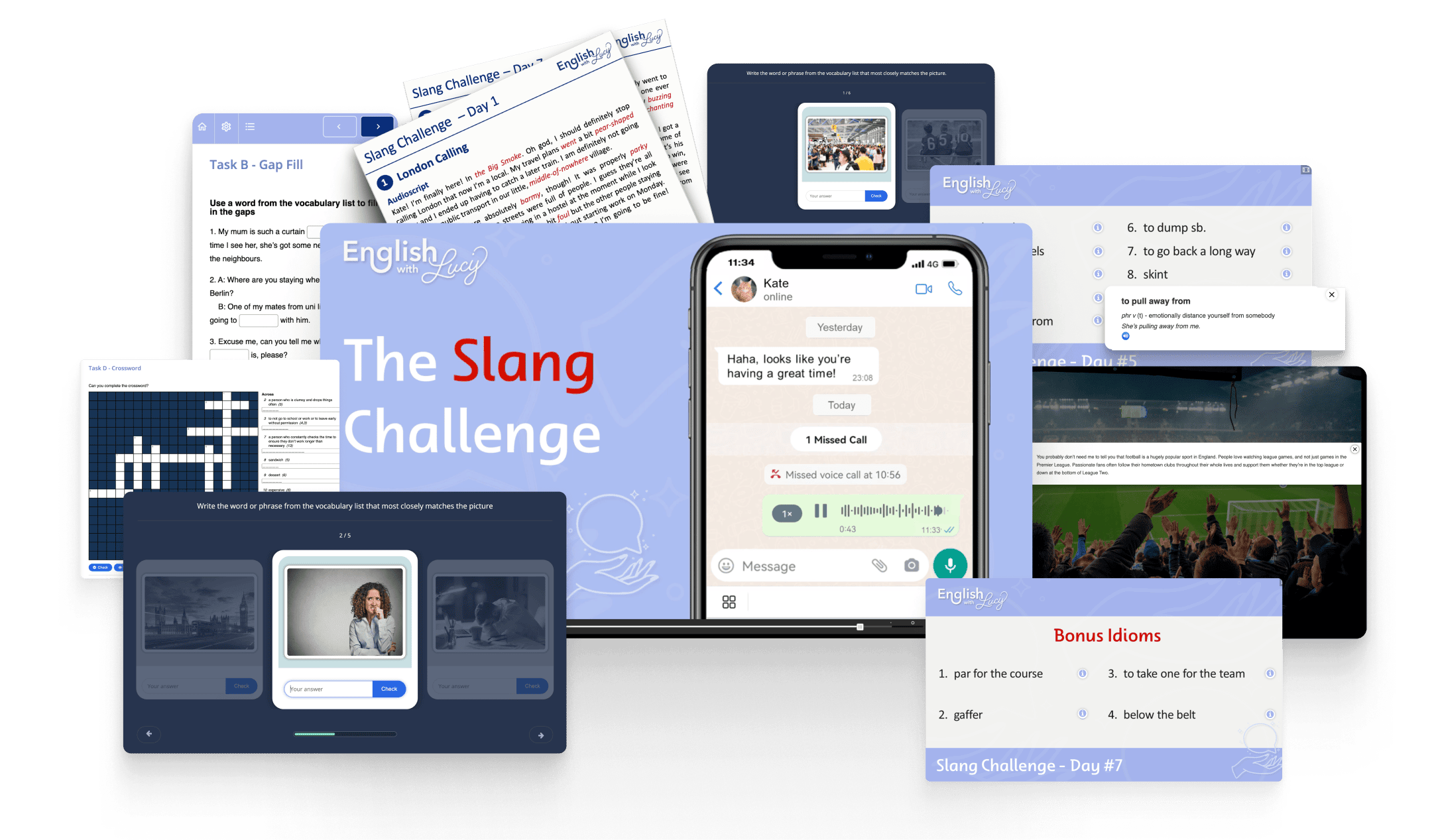 Daily audio lessons: You'll learn 9-15 authentic slang phrases every day – the ones you hear in British conversations, TV shows, podcasts – all of it.