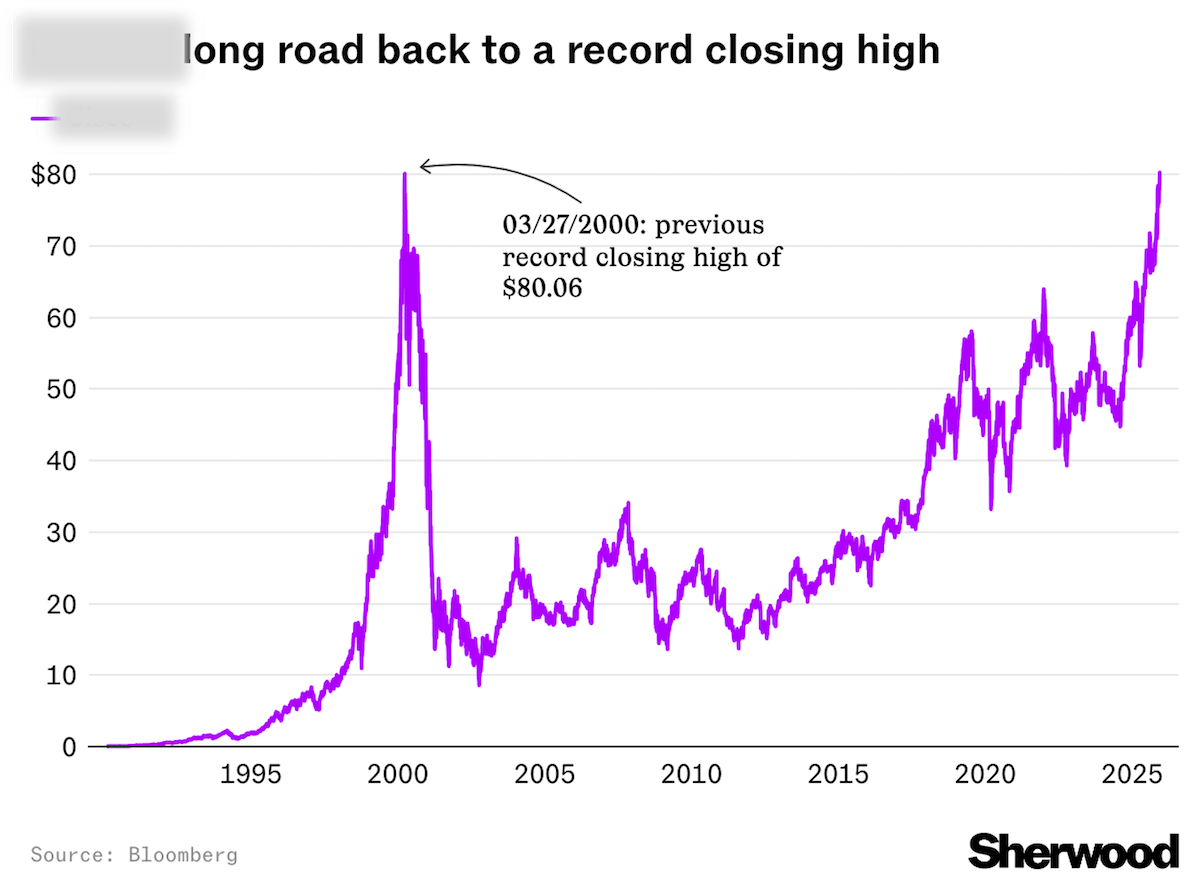 Off the charts: Which tech hardware maker has finally seen its stock get back to where it was during the dotcom bubble? [Answer below]. |
