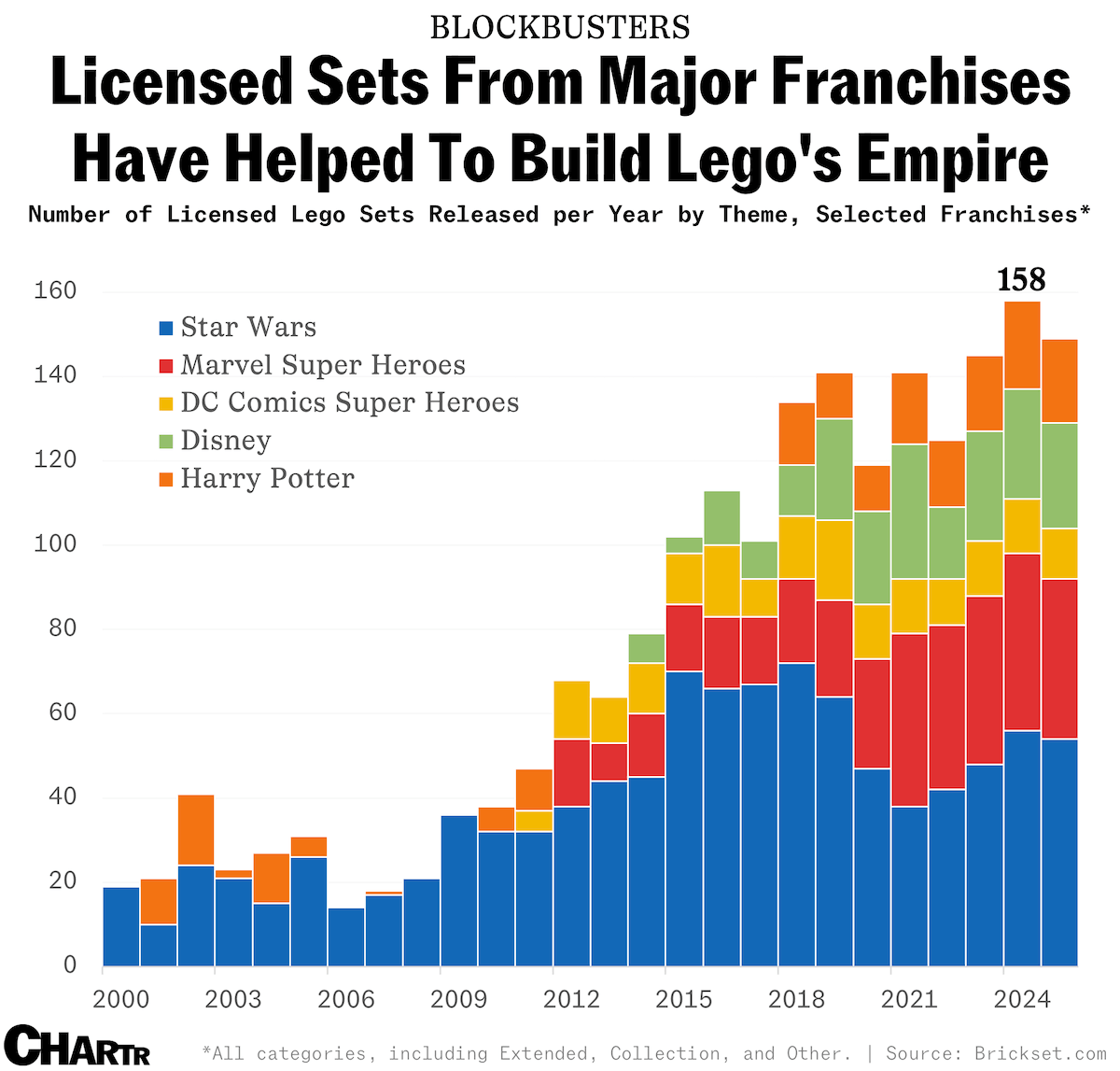Lego sales have gone from strength to strength in the last few years, reporting record revenues of DKK 34.6 billion (~$5.4 billion) and soaring profits in H1 2025, owing largely to the success of its themed sets. Indeed, Lego’s partnerships with iconic brands like Marvel, Harry Potter, and, more recently, Fortnite and Ikea have seen it become a hit with kids and adults alike, securing cultural relevance outside of the play chest.