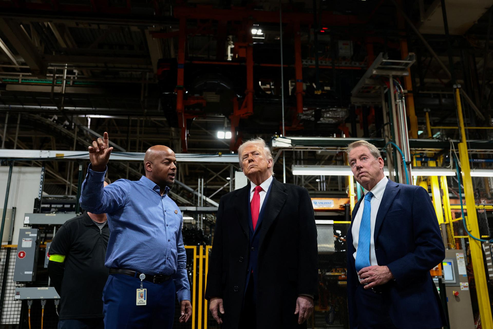 Donald Trump stands with Bill Ford, Executive Chairman of Ford and Corey Williams, Ford River Rouge Plant Manager, in Michigan, U.S. REUTERS/Evelyn Hockstein |