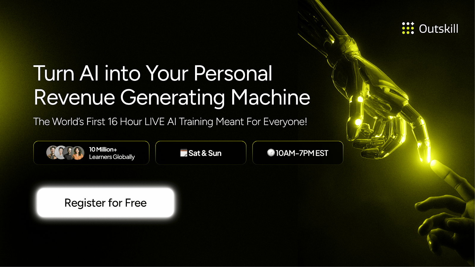 Outskill's 16-hour LIVE training teaches you AI in just 2 days - the skill that makes you smarter, faster, more revenue-driven, and irreplaceable.