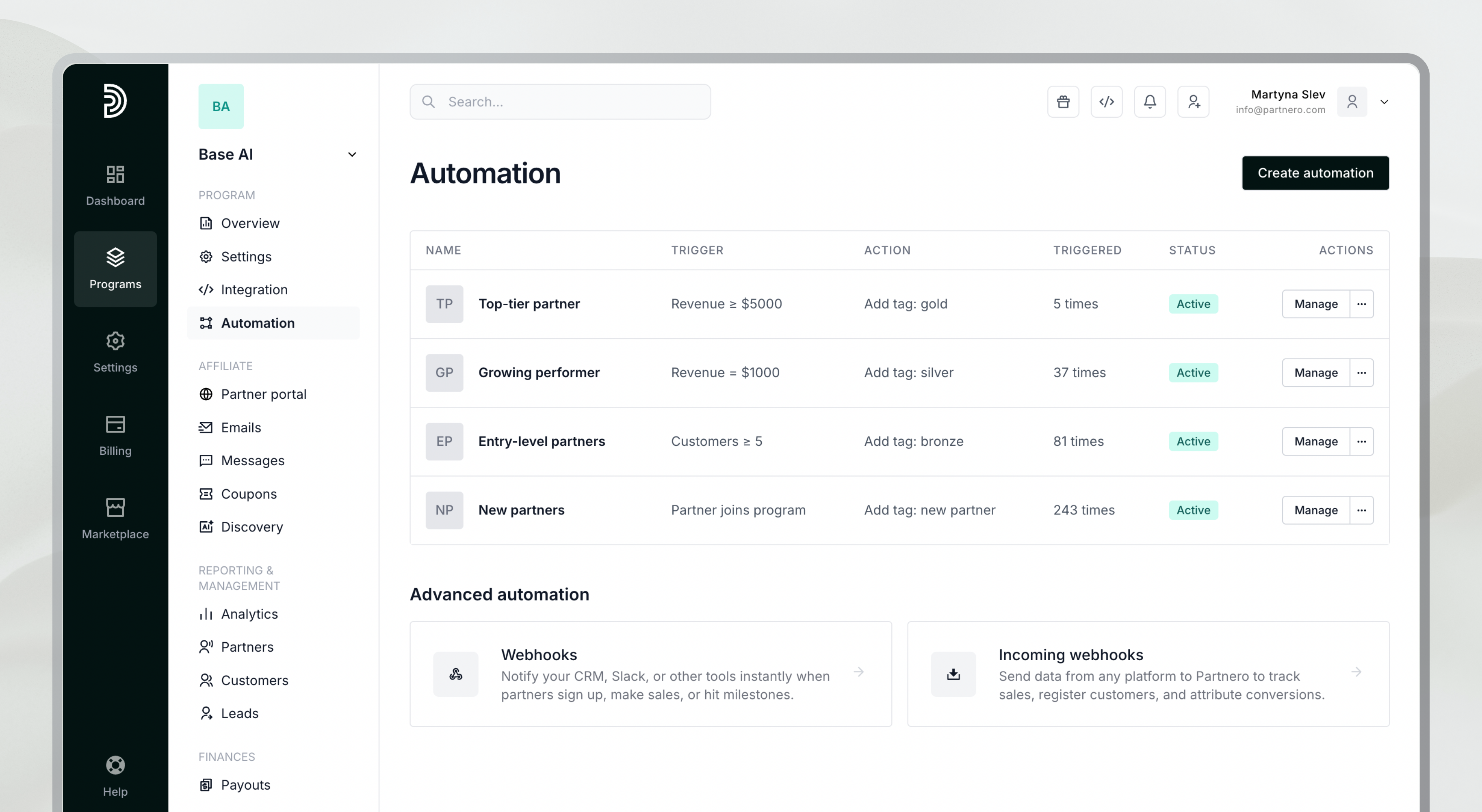 Managing partners manually can get overwhelming as your program grows. Partner tag automation lets you define rules once and automate how tags are assigned or removed based on partner behavior, saving you time and bringing structure to your affiliate workflow.
