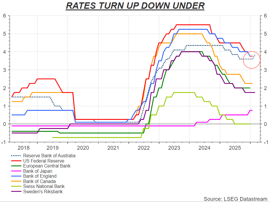 Japan's peculiar circumstances apart, the RBA is the first major central bank since 2023 to hike rates — and just six months after its last cut.