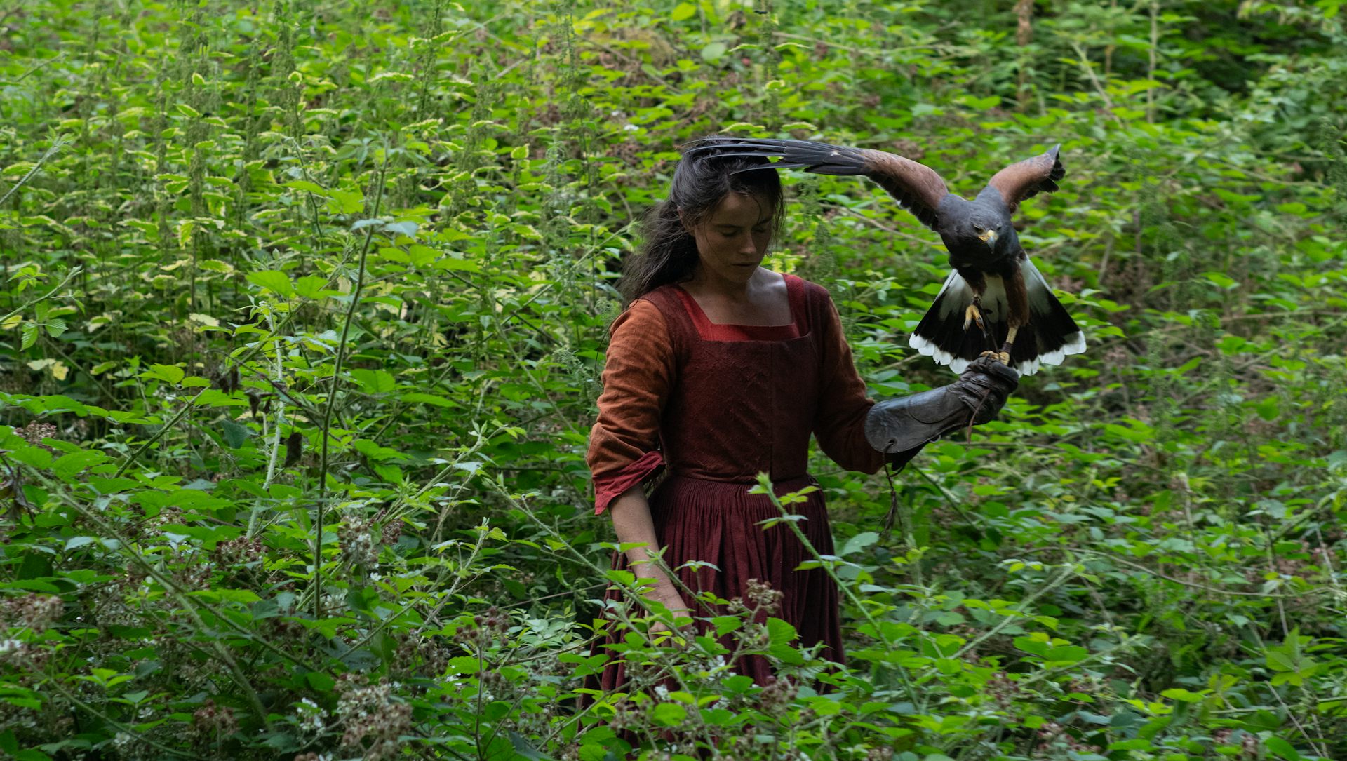 Agnes Hathaway (Jessie Buckley) and her hawk.