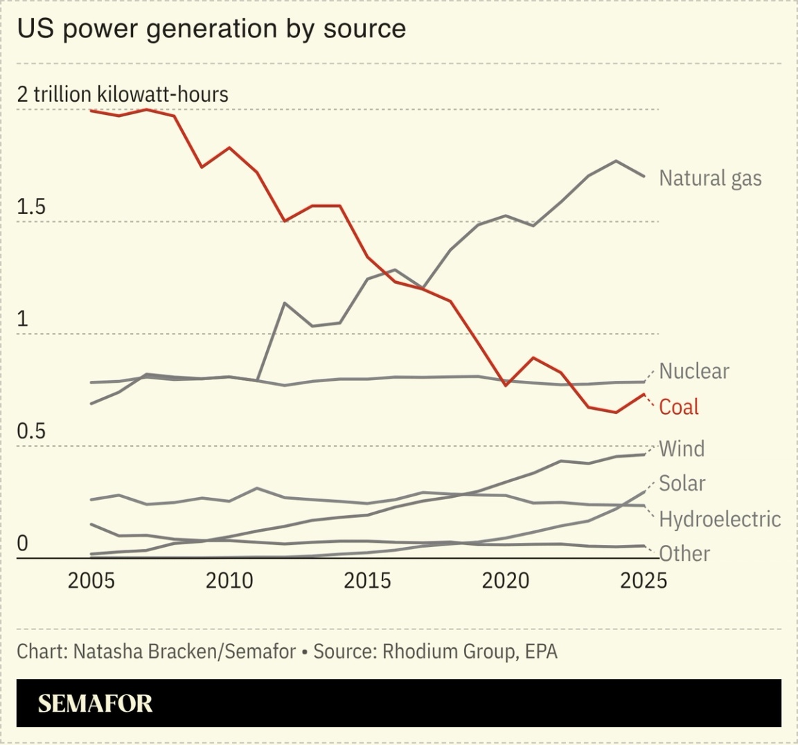US President Donald Trump ordered the Pentagon to purchase more electricity from coal plants in order to power military installations, the latest effort by the White House to revive the dirtiest and most expensive fossil fuel. Trump signed the executive order on Wednesday, when he also announced that the Energy Department would award $175 million in government funding to upgrade six coal plants. The announcements follow a string of moves by the administration to revive the fossil fuel under an “energy emergency,” including the Energy Department’s allocation of $625 million to help reinvigorate the struggling industry, and the Interior Department’s decision to open more federal land for coal leasing. The enthusiasm has spread beyond the White House: The nation’s largest public utility announced this week it would keep two large power plants open in Tennessee that had been slated for retirement within two years. Beyond reviving dormant coal plants, Trump is also easing the path for coal by dismantling federal policies that raised its costs (he is expected to announce today the end of the endangerment finding), while eliminating tax incentives for renewables. — Natasha Bracken |