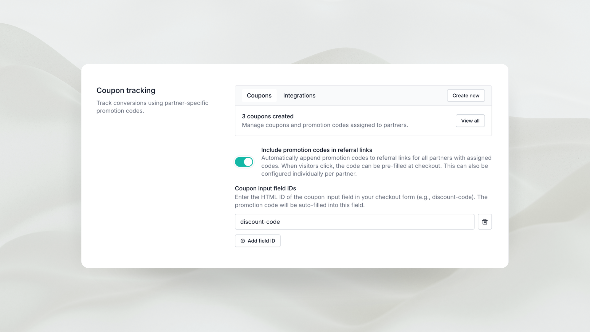 Now, promotion codes can be automatically applied at checkout when customers use a partner’s referral link. No manual entry. No friction. No missed discounts.