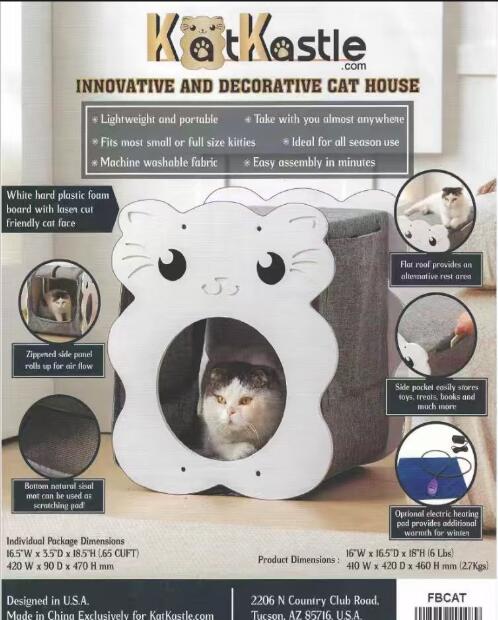 We're very proud to introduce our exclusive, all-season cat house for most small and full-grown kitties.