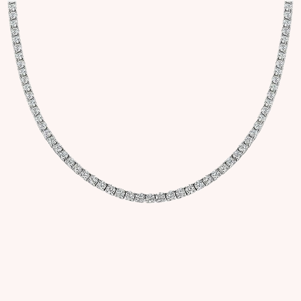 13.24 ctw 14K White Gold 17 inch Basket 4 Prong Tennis Necklace