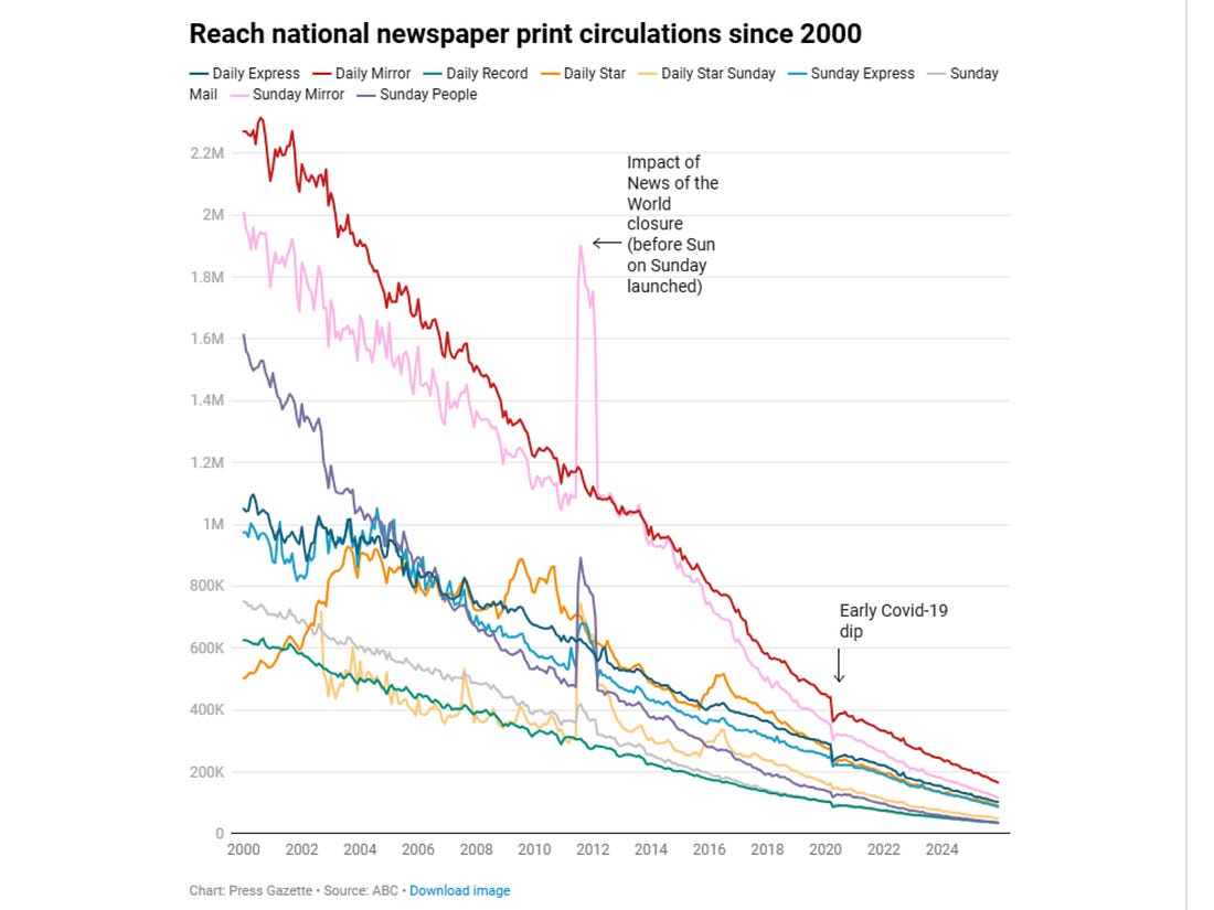 Fighting for journalism and profitable news media National press sales figures go dark | Spectator hits record sales with new subscriptions techAnd The Sun grows its video audience to 1bn+ monthly views with 25 new showsGood morning from the team at Press Gazette on Thursday, 19 February. This newsletter is brought to you in association with Opinary – the audience engagement platform behind polls in The Times, FT, DMG & more. Explore what you can learn from leading publishers’ successful engagement and retention strategies surrounding interactive reader formats. 🗞️ A monthly staple of Press Gazette coverage comes to an end this week as Reach national newspaper titles withdraw from public ABC auditing. The move means that the Mail titles, Metro, i and the FT are the only UK-wide national newspapers still publishing print sales data. You will need to be an ad buyer willing to sign an NDA in order see all the UK national press sales figures in the future (unless we can find a mole, we pay cash for stories!) . We have the final national press ABC tallies here, including guestimates of where the other privately audited titles are and a look back at the historical circulation trends. 🤔 Thankfully UK magazines are still publicly ABC audited... up to a point. New UK ABC magazine industry sales figures combine print and digital circulation in one tally. There are two complications though, which flatter the numbers and have left your hardworking Press Gazette team scratching their heads and sweating over spreadsheets. If one magazine article is read on a news aggregator like Apple+ that counts as a sale. And readers who subscribe to print and digital editions get counted twice in many cases. We will attempt to see through the fog of stats to give you a clear-eyed view of the state of the industry over the next few days. The last one of these may still look like it was put together by undergraduates armed with typewriters, craft knives and Pritt Sticks but it now sells more than most national, newspapers. Sun director of video Jon Lloyd explained how his 80-strong team grew the audience to more than one billion monthly views after launching 25 new video formats over the last year. |