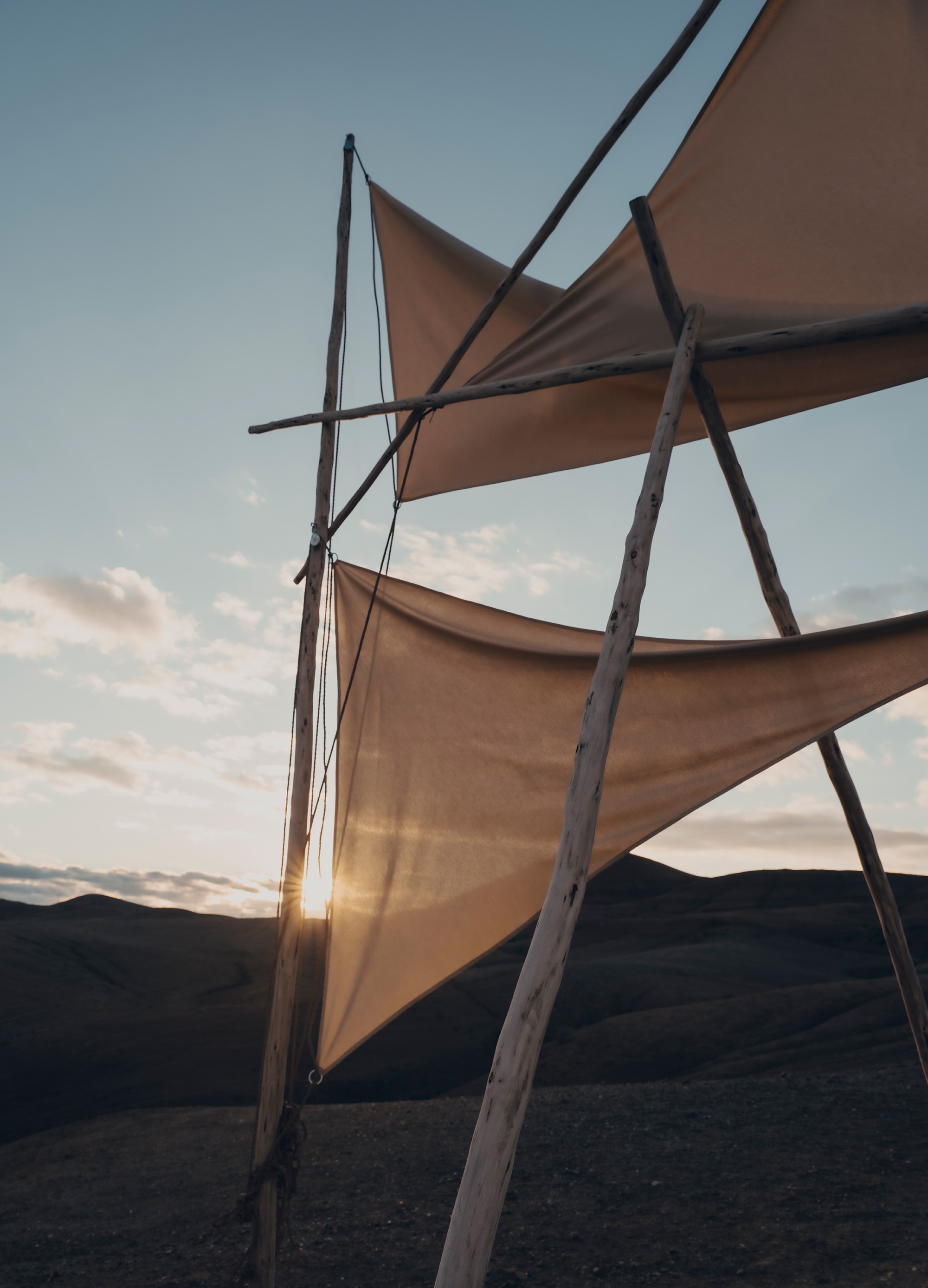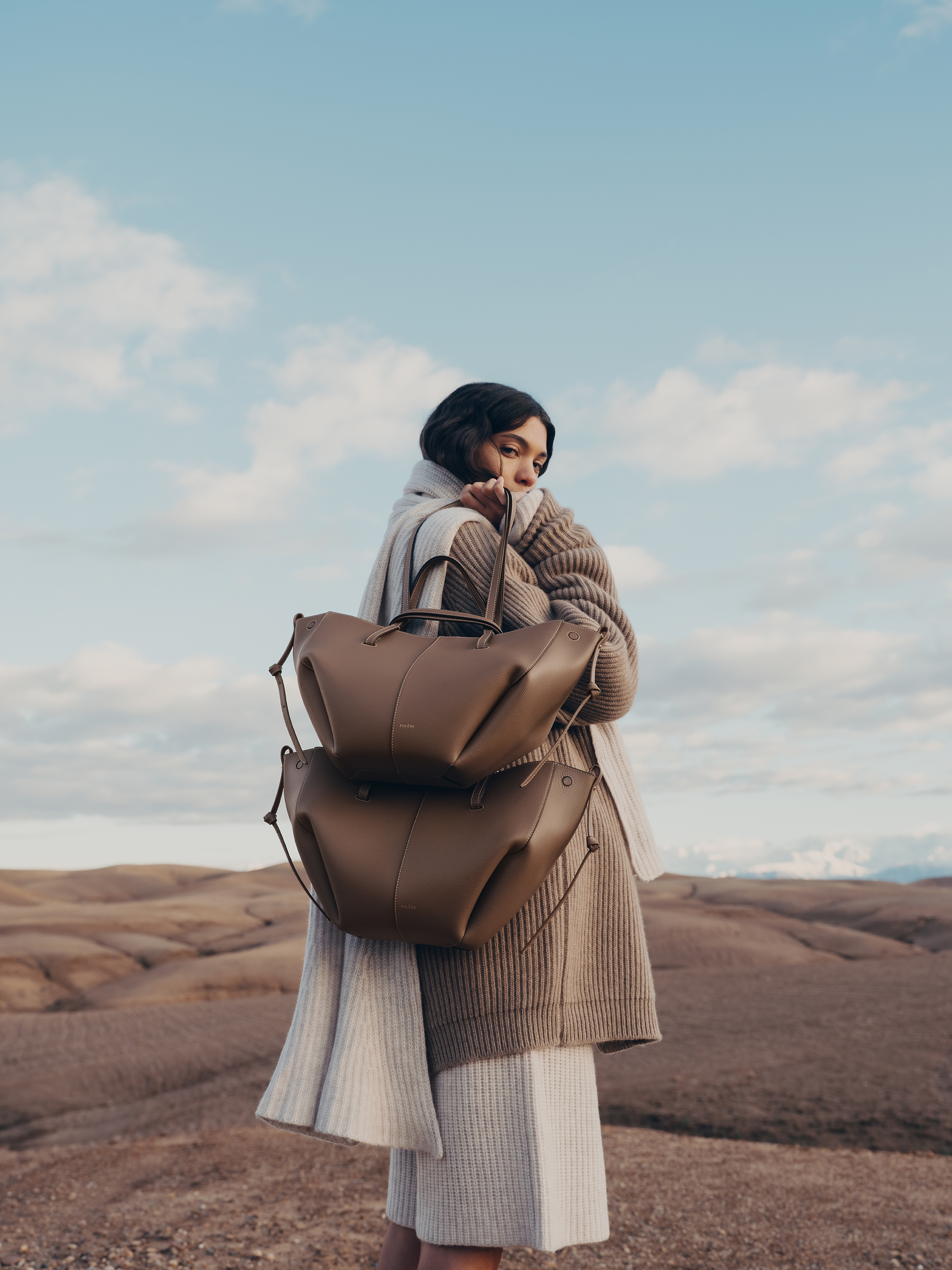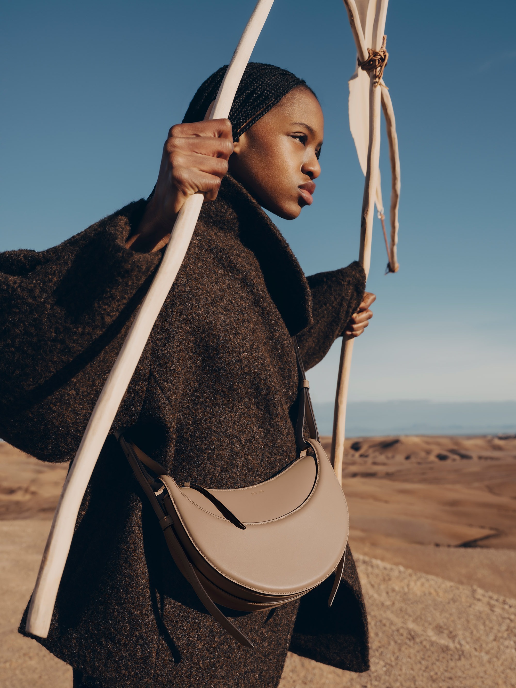 A poetic escape into the heart of the Agafay Desert, Polène messenger bags communicate without words, sending signals across vast, draped installations shaped by the wind. Guided by their free and intuitive femininity, they live in harmony in this landscape of ever-changing colors. This springtime awakening, a dialogue of materials and gestures, is illuminated by French photographer Charlotte Lapalus.