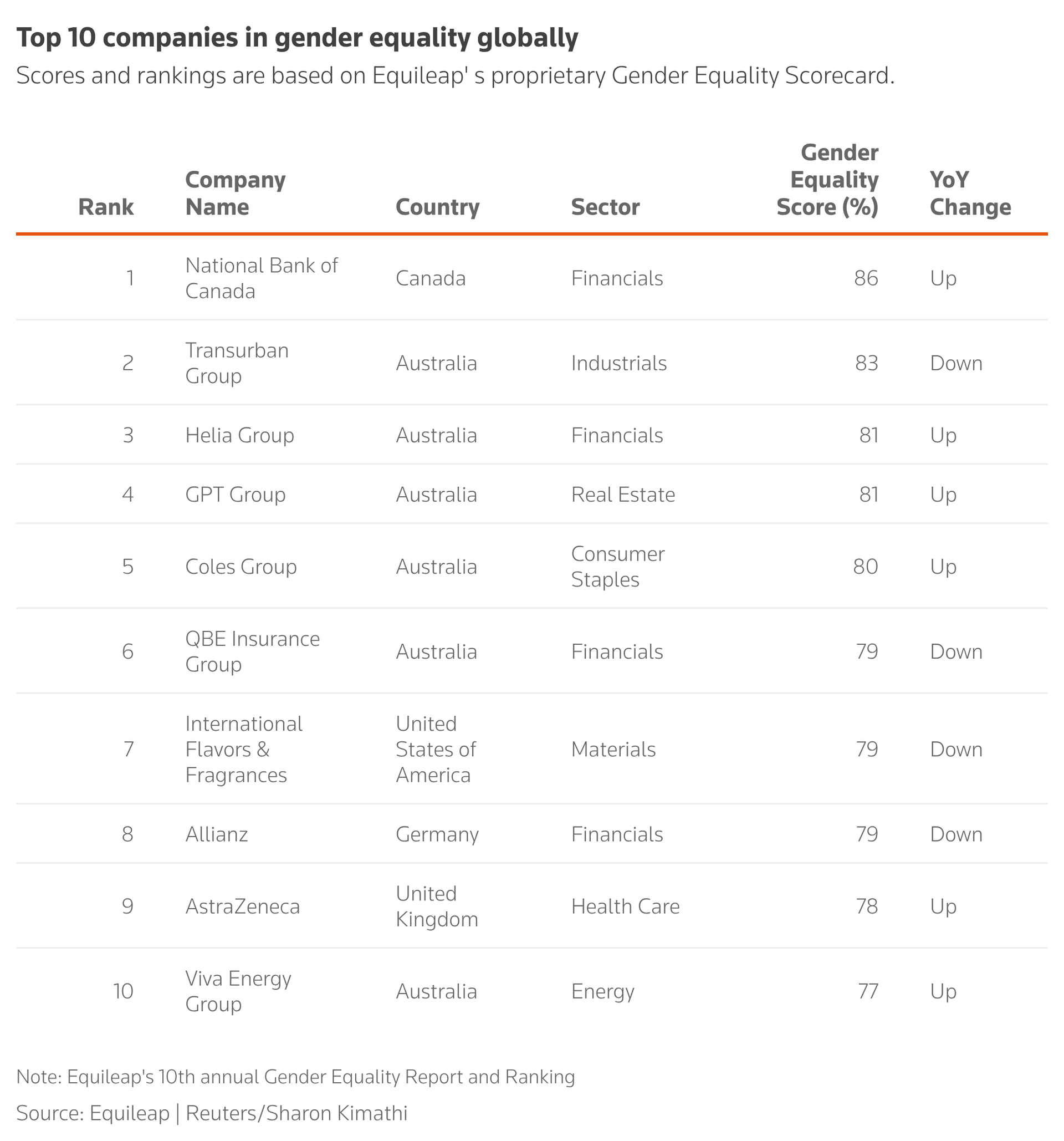 As I mentioned above, although there are challenges, we still need to celebrate our successes. There are still companies out there that are championing gender equality. Equileap, an international data provider for diversity and inclusion and gender equality, just crowned their best performing company for gender equality globally.