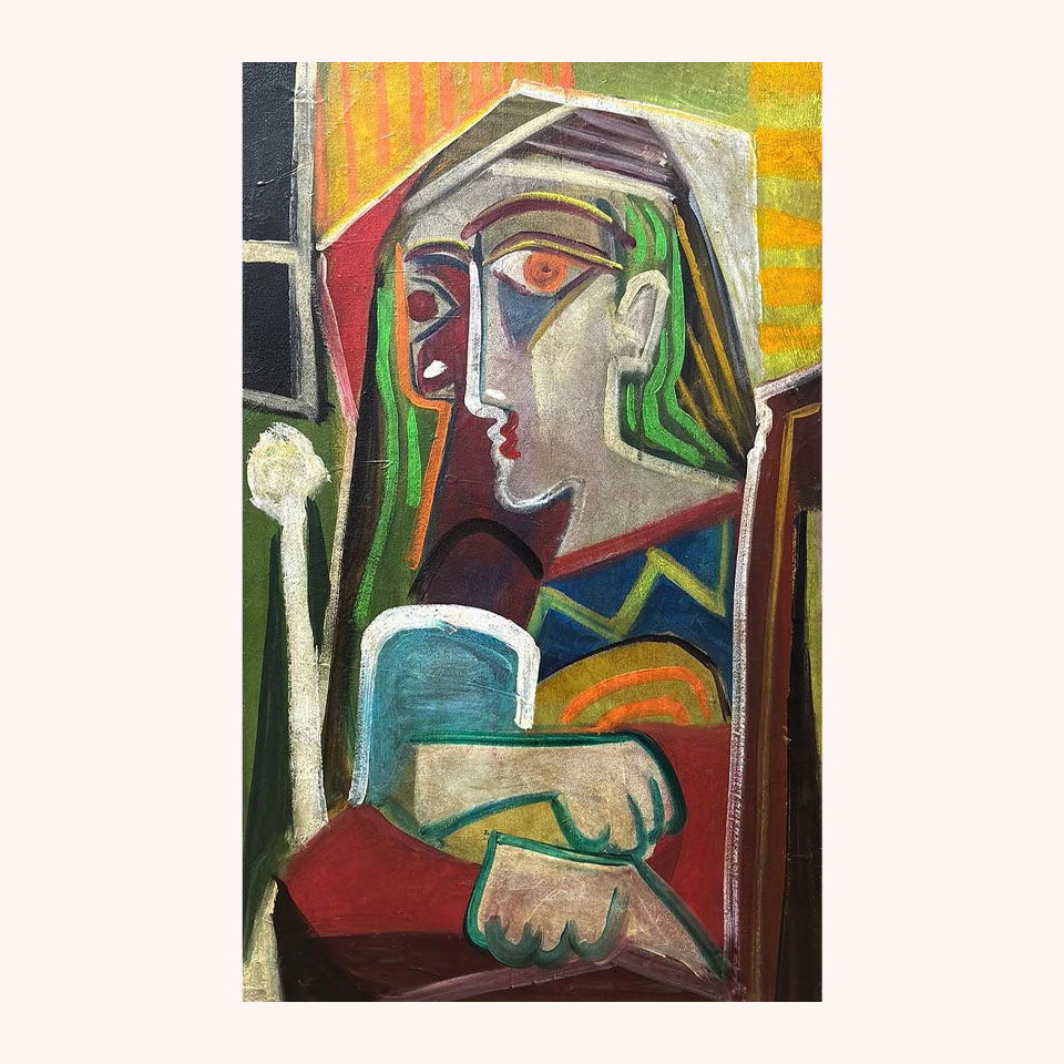 Pablo Picasso Spanish 1881-1973 Oil on Canvas Painting in the Style of Picasso. Magritte & Chagall