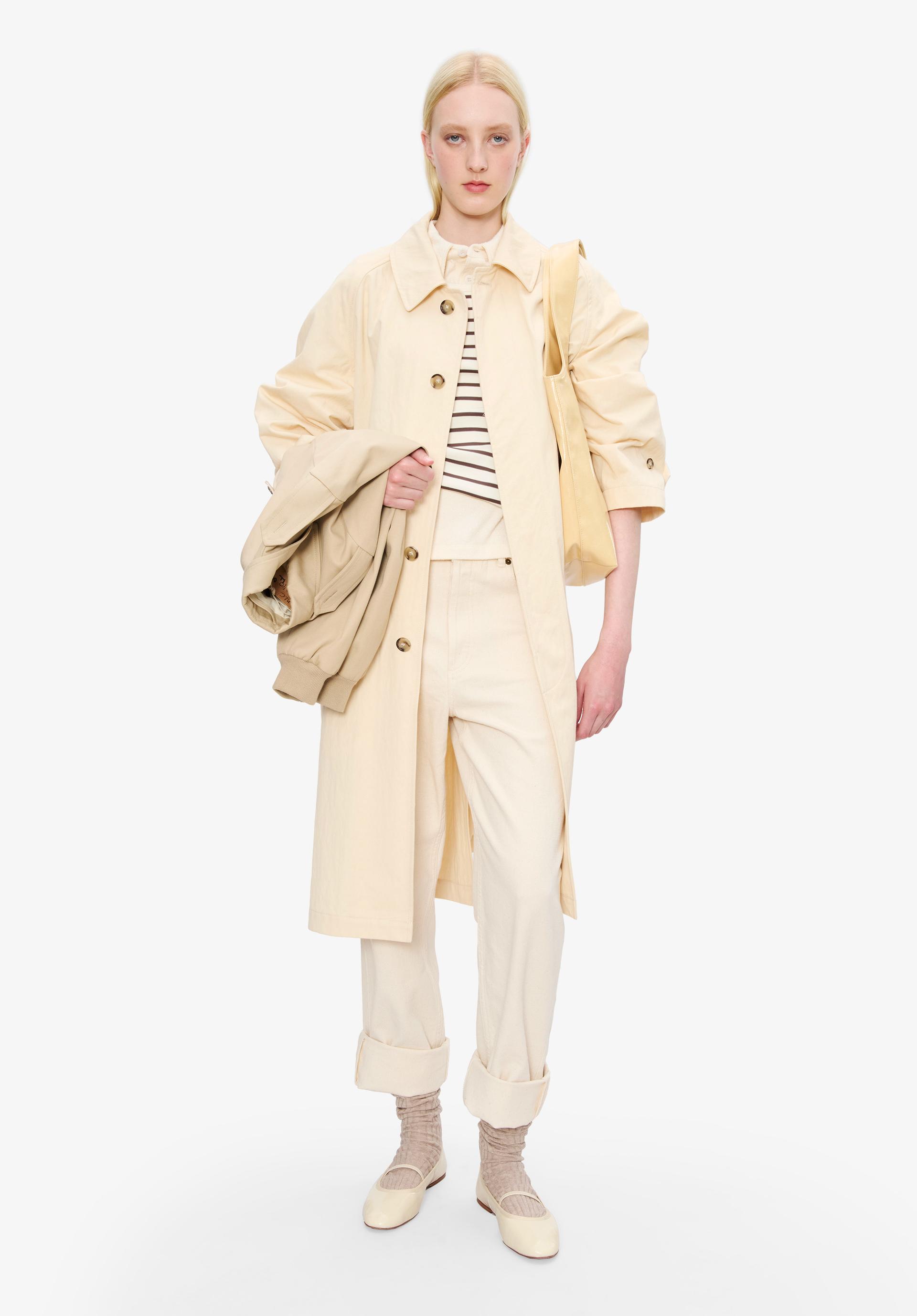 This season, A.P.C. plays with layering in light tones: beige, ecru, off-white. A t-shirt under an open button-up shirt, a sweatshirt under a light jacket … Pieces combine easily without weighing down the silhouette. Volume is constructed with materials and cuts, with an eye for minimality. The result: a structured look that seems effortless. | |