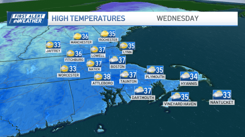 The winds have finally backed off, but their job is done. Cold temperatures will rule for a bit, before we see a moderation into the weekend. The big issue today and tomorrow is sunshine. This time of year, cold can be offset by the bold sun. Unfortunately, the clouds will advance this afternoon, making our mid-30s feel like upper 20s. |