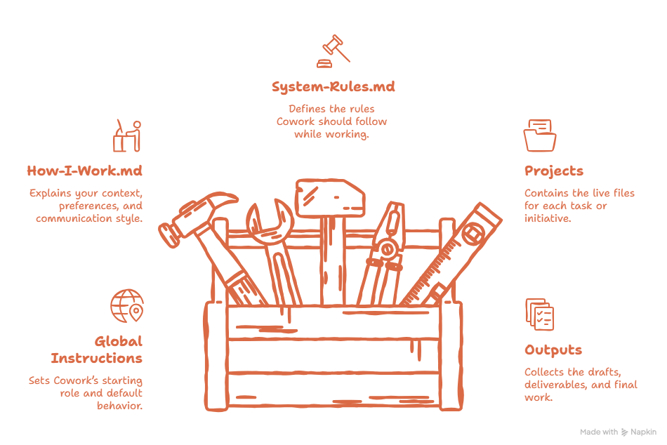 I used to get mediocre results from Claude Cowork. The tool wasn’t broken. My workspace was. Most people open Cowork and do this: open a folder → write a prompt → hope for the best Sometimes it works. A lot of times, it doesn’t. And that’s not Cowork’s fault. Cowork is stepping into your workspace with zero context, no rules, and no clear way of working. So it starts improvising. It doesn’t know what tone to use. That’s why so many people try it and walk away thinking it feels like just another chat … just with file access. In this guide, we’ll fix that. I’ll show you a simple system that gets the most out of Cowork. By the end of this guide, you’ll have: