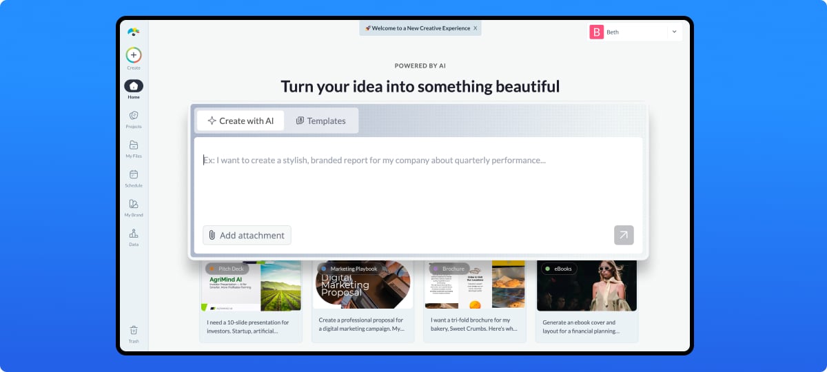 • A refreshed AI-first dashboard to help you create content smarter and faster.