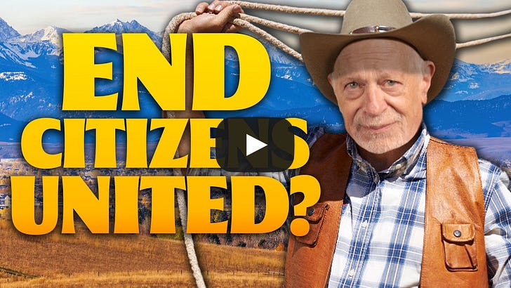 Friends, This week’s video is important. It shows a clear path to getting rid of the Supreme Court’s horrific 2010 decision Citizens United vs. Federal Election Committee. That decision opened the floodgates to campaign spending by giant corporations. The high court reasoned that corporations are people who have First Amendment rights to free speech, and that corporate spending on elections is a form of free speech. But the Supreme Court never got to the more fundamental question of corporate power, because since the early twentieth century states haven’t limited corporate powers to do much of anything. Yet corporations are creatures of state law. States create and define corporations. Whatever powers corporations have come from state decisions to grant them those powers. This principle is embodied in an 1819 opinion by Chief Justice John Marshall declaring that a corporation “possesses only those properties which the charter of its creation confers upon it.” It wasn’t until the early 20th century that states began to give corporations all the powers human beings have. But states don’t have to do that. States can decide to give them the powers they need to do their business, but not the power to spend money on elections. This isn’t about corporate rights. It’s about the more basic question of corporate powers. If a corporation doesn’t have the power to do something in the first place, it obviously doesn’t have any right to do it. Without the power to do it, a corporation cannot do it. The state hasn’t empowered it to do it. Montanans will be voting next fall on whether Montana should remove from corporations doing business in Montana the power to spend money on elections. Hopefully, their answer will be yes. There’s absolutely no reason why states should grant corporations this power. So far, lawmakers in 9 other states have introduced bills mirroring the Montana plan. Proposals are active in California, Georgia, Maryland, Minnesota, Missouri, New York, Rhode Island, Washington state, and Hawaii, where a version has already cleared one chamber. Here’s more information on the Montana plan. Please push your state to follow Montana’s lead. Organize and mobilize. Share and use this video — so we can get rid of “Citizens United” for good. So glad you can be here today. Please consider becoming a paid subscriber of this community so we can do even more. |