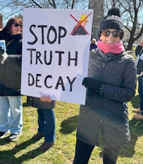 Trump was pathetic last night. I don’t have much else to say about his “address to the nation,” supposedly about the war he started. He had nothing new to say, we’ve heard it all for weeks now, and it was all lies. A lot of false claims and bravado. He also stumbled on his words a few times and was very low energy. I didn’t really expect more, and I almost stopped watching, but kept going…not sure why. I do want to show you a photo from the front page of the NY Times. Most people might not notice what I see, on first glance, it appears like another photo of him speaking. But to use this image on the front page is telling. Here he looks desperate, the framing of the photo makes him look weak. These choices are not random, the editors decided to run this photo to say something without obviously saying, “Trump is pathetic.” They can do that in so many words in editorials; I think they did so in their choice of this photo at the top of the front page this morning. After his speech, into the night, Trump went to social media to blast out on personal grudges, including attacking Bruce Springsteen. “The guy is a total loser who spews hate against a President who won a Landslide Election, including the popular vote, all Seven Swing States, and 86% of the Counties across America,” Trump wrote. “MAGA SHOULD BOYCOTT HIS OVERPRICED CONCERTS, WHICH SUCK. SAVE YOUR HARD EARNED MONEY.” The war rages on. Here are some photos of the destruction Trump is causing. Trump is talking about firing Pam Bondi and replacing Telsi Gabbard. He already got rid of Kristi Noem. The women are taking the fall. To end this depressing missive, I offer you an iPhone drawing I did on the subway yesterday. This woman was a bright light when she entered the train, I knew I had to draw her! Here is the video grab: And finally, more signs from our Seeing Things community! Thank you everyone, you are also bright lights in my days. |