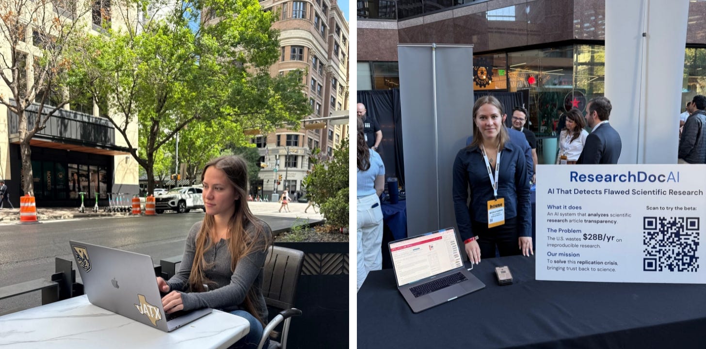 Some current projects with the UATX Innovation Labs and Alpha Fellowship:Almar Tiskenko & Max Litvinenka — UATX sophomores deploying AI to teach their generation Socratic thinking with Reading Rooms.Max: “With Reading Rooms, my goal is to use AI to strengthen critical thinking, support real reading, and preserve the humanity of learning, so that we don’t confuse intelligence with automation and productivity, while still raising people who can think for themselves and make decisions using the amazing opportunities that modern technologies provide.” ![]() Rhett Jones, UATX sophomore — building Cased (ridecased.com), an action sports clothing brand."We are currently at $500k/month in revenue. I am 10 months into my journey so far. I was able to start this because of the grant money I got from the Alpha Fellowship. Every penny I got went into research and development." ![]() Nicole Kargin, UATX sophomore — automating peer review with ResearchDoc AI.“The same way a credit score shows you how financially trustworthy someone is, ResearchDoc AI shows you what articles, authors, and journals you can trust in academia: it’s a web-extension that scores scientific research article publications… The Alpha Fellowship has made my enormous goal of reforming the scientific publication system possible. It has taught me how to leverage AI to its fullest potential (and also how not to use it), how to build from zero to one in a day, and how to go from one to infinity. The Innovation Labs at UATX have given me countless opportunities to grow as a founder. They got me a table at Capital Factory’s SXSW Startup Crawl (for free!), where I made connections that transformed my company’s future. I’m so grateful to both the Alpha Fellowship and UATX for their support, without which I would not be where I am today.” Jack Erickson, UATX sophomore — tracking hydration and delivering personalized electrolyte doses with Oros Hydration’s smart water bottle.“Six months ago I knew nothing about hardware. Now Oros - a smart water bottle with a built-in electrolyte cartridge that micro-doses based on your hydration patterns — is heading into testing.” Ethan Brewster, UATX sophomore — ensuring patients pay fair healthcare prices with Fairdoc."I'm building Fairdoc, an AI-powered medical bill advocacy platform that helps patients find billing errors and negotiate lower costs. I started this because I watched my father avoid care he desperately needed over a price that turned out to be wrong. Nobody should have to choose between overpaying and skipping care because they can't get a straight answer on cost. This venture wouldn't have been possible without the Alpha Fellowship, which gave me the runway to go all-in on solving this problem." ![]() Danielle Guilbot, UATX sophomore — developing Texas Film Scene, an all-in-one production platform for Texas film and television.“My aim is to simplify the claiming, compliance, and distribution of Texas’ $1.5 billion in film incentives so that we can make Texas the new Hollywood. The Alpha Fellowship and UATX Innovation Labs have provided incredible networking connections, and the Alpha Fellowship has provided wonderful support for my business through mentors like Douglas Green, a solid structure with weekly meetings and sprints, as well as unbelievable financial support that allowed me to pursue something I’m truly passionate about. |