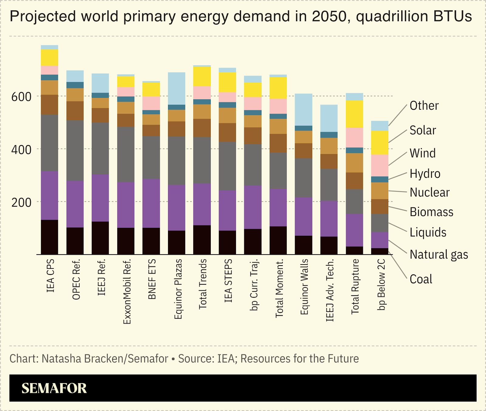 The Paris Agreement’s “stretch goal” of limiting warming to 1.5 C above preindustrial levels is no longer feasible, according to an analysis of 15 market outlooks compiled by think tank Resources for the Future. Energy-related CO₂ surpassed 38,000 million metric tons in 2024, and most forecasts don’t expect a peak until sometime between 2030 and 2035, with reductions by 2050 varying significantly. The most aggressive projection — the International Energy Agency’s Net Zero scenario — demands emissions fall by 13.4% every year through 2050 (the steepest drop this century was 5%, during COVID-19 shutdowns). Renewables will keep reshaping the energy mix, rising from roughly 15% of primary energy in 2024 to more than 20% by 2050. But that won’t be enough to meaningfully cut emissions while fossil fuels enjoy strong markets across the Middle East, Asia, and Africa. Rising electricity demand is also compounding the issue. Global power generation roughly doubled between 2000 and 2024, and could climb another 59% — or more than double again under some scenarios — by 2050, driven by the AI boom, the electrification of transport, and the rapid spread of air conditioning. Renewables are expected to supply a chunk of that new demand, but those additional terawatts represent “an energy addition, not an energy transition,” the report’s authors wrote. — Natasha |
