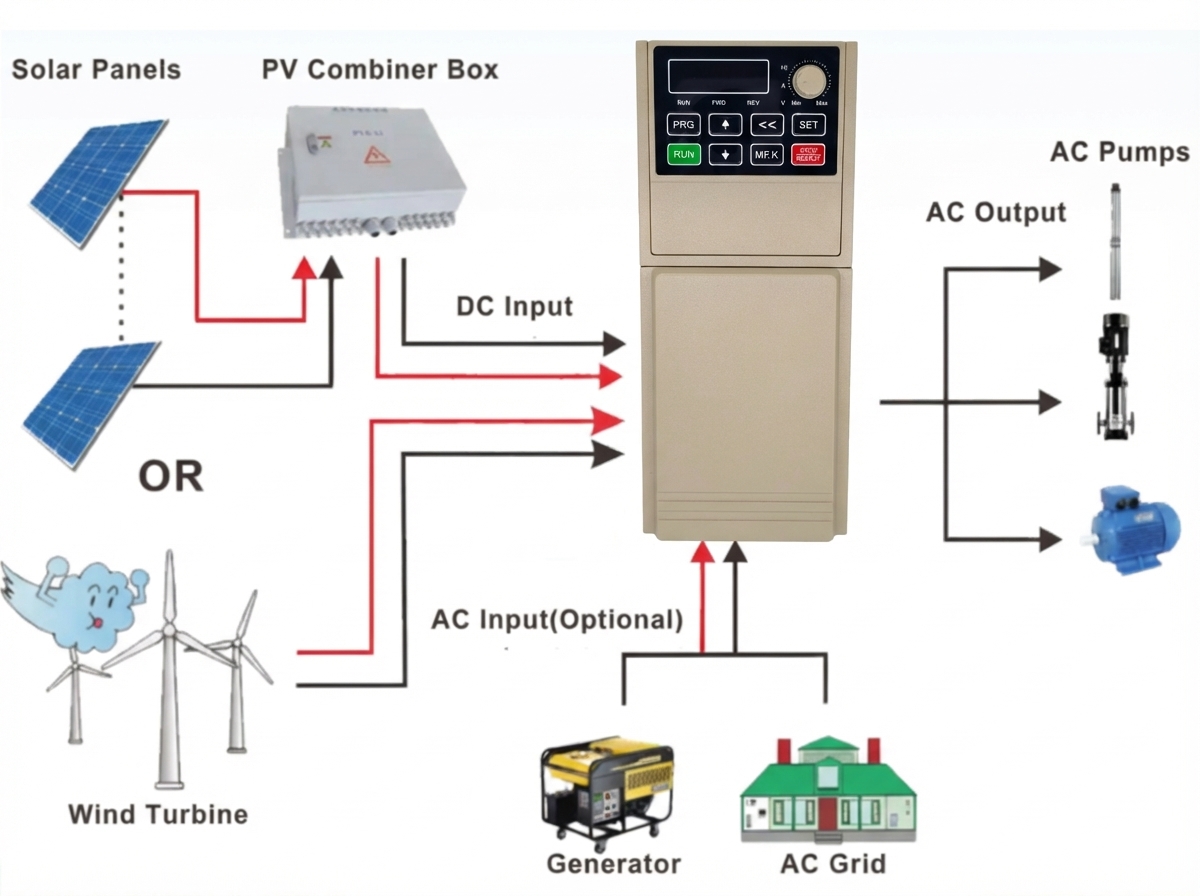 Enable to drive for 1 phase AC pumps or 3 phase AC pumps