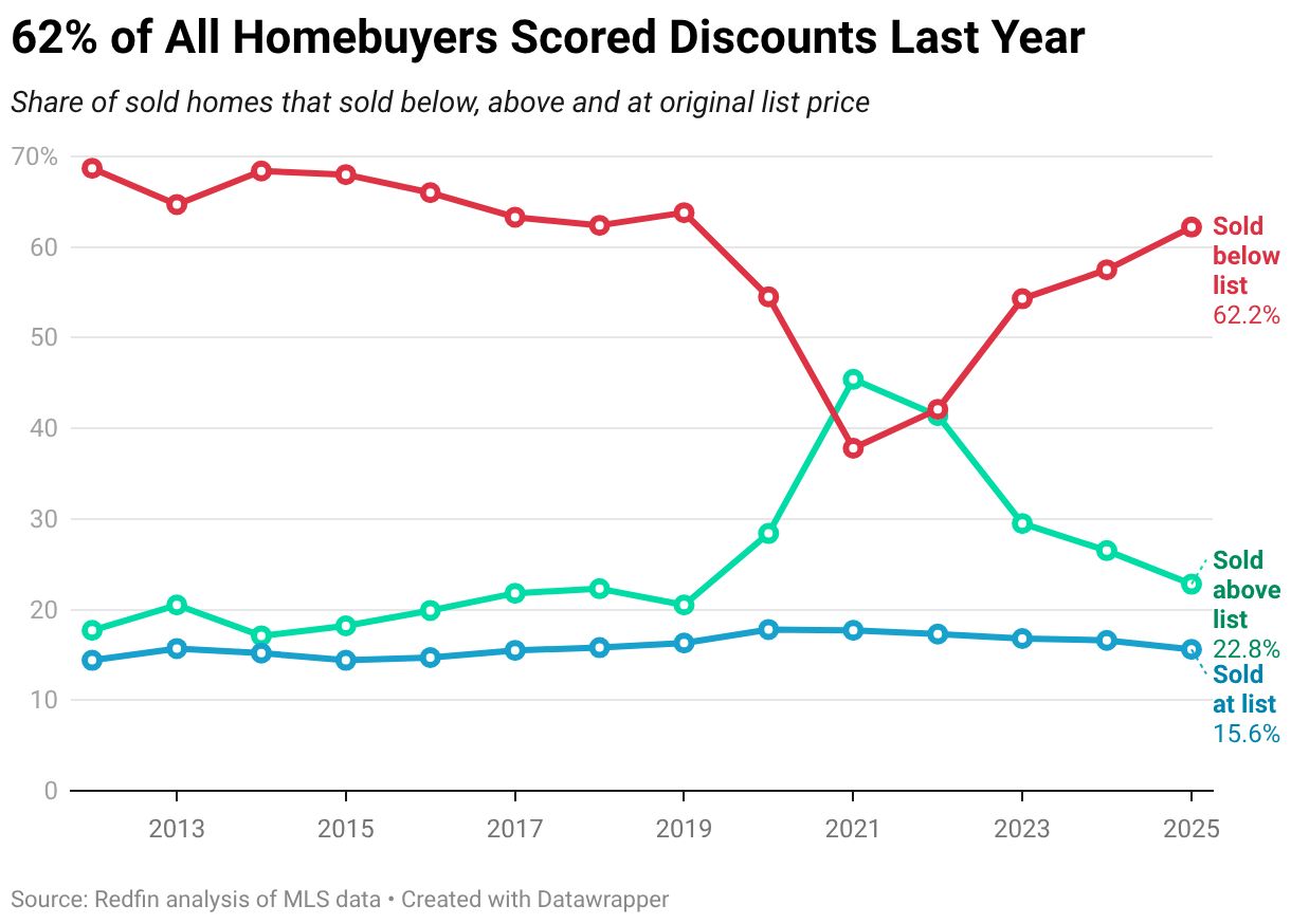 | So, you remember the cheese puns that used to open this newsletter? Suffice to say, they were divisive. Now, thanks to a thing called “dynamic content options,” I can offer you the option to see cheese puns again, if you’re one of the thousands who got in touch bemoaning their departure six months ago. All you need to do is answer “true” on this survey, and submit it. If you never want to see cheese puns in this newsletter again, don’t click that link, don’t fill out the survey, don’t submit it1 . Just keep reading and pretend this conversation never happened. Mmmkay? Thank you. | This week’s world-famous news haiku competition™ is about how Waymo is under federal investigation after a driverless car hit a child near a school. It’s a heavy topic (thankfully, the child survived), but I believe that you, yes, you, dear reader, can craft a worthy haiku on the subject that will bring moral and spiritual clarity to the moment, just as you do each and every week. So: Send me your entry — to our spiffy new email address, haiku at cheddar dot com — by noon ET Thursday, for consideration by your Cheddar peers! | And now for something completely different. | Matt Davis — Need2Know Chedditor | | News You Need2Know | | | What’s the stock market up to, eh? | $SPX ( ▲ 0.54% ) $DJI ( ▲ 1.05% ) $NDX ( ▲ 0.56% ) | | Companies mentioned in today’s newsletter | $REDFIN ( 0.0% ) $GOOGL ( ▲ 1.68% ) $DIS ( ▼ 7.4% ) $BCS ( ▲ 2.84% ) | | The housing market seems to be favoring buyers | | After years of cutthroat competition and skyrocketing prices, the tides are shifting in the U.S. housing market. Homebuyers are now enjoying discounts and negotiation leverage not seen since 2019, with 62% of buyers purchasing homes for less than the original listing price last year, according to a new analysis from real estate brokerage Redfin. | Homes that sold below their listing price in 2025 averaged an 8% discount — marking the largest price cuts since 2012. The 8% discount is equivalent to $36,000 on a $400,000 home, the “average” in the U.S. if you’re buying in an area where the prices aren’t insane. | Additionally, buyers are securing other concessions, such as help with closing costs or mortgage rate buy-downs, reflecting a clear turn toward a buyer-friendly market. “When there is this gap between what sellers expect and what buyers can afford, it’s the buyers that end up negotiating that lower price,” said Daryl “All’s” Fairweather, Redfin’s chief economist, speaking to the Wall Street Journal. | The shift follows a period of low demand, spurred by high mortgage rates and elevated prices. In December, the market saw a record gap of over 600,000 more sellers than buyers. Yet for those able to purchase, the abundance of supply and reduced competition is an advantage. Jason “Fly Me to the“ Moon, a real estate agent in Indiana, noted, “There’s definitely sellers who are willing to negotiate way more now than they were the last couple of years.” | This buyer’s market is particularly strong in Southern states like Florida and Texas, where booming new-home construction has increased inventory. In Florida metro areas such as Miami and Fort Lauderdale, over 85% of homes sold below listing price in 2025, providing relief for selective buyers like Jon and Hannah Vokal. The couple, who began house hunting in 2024, recently closed on a home in Austin for 4% below the asking price. “The general lowering of buyer demand has made the market a good bit more favorable,” Jon told the Journal. “This is the best environment that I think I’ve been in as a buyer so far.” | | | Trump to slash India tariffs after Modi ‘agrees’ to stop buying Russian oil | President Donald Trump has reduced U.S. tariffs on Indian goods from 25% to 18% following Prime Minister Narendra Modi’s agreement to halt purchases of Russian oil, which Trump previously criticized as funding Moscow’s war in Ukraine. Reporters learned of the news after Trump wrote about it on Truth Social, the social media network he owns: | Donald J. Trump (@realDonaldTrump) It was an Honor to speak with Prime Minister Modi, of India, this morning. He is one of my greatest friends and, a Powerful and Respected Leader of his Country. We spoke about many things, including Trade, and ending the War with Russia and Ukraine. He agreed to stop buying Russian Oil, and to buy much more from the United States and, potentially, Venezuela. This will help END THE WAR in Ukraine, which is taking place right now, with thousands of people dying each and every week! Out of friendship and respect for Prime Minister Modi and, as per his request, effective immediately, we agreed to a Trade Deal between the United States and India, whereby the United States will charge a reduced Reciprocal Tariff, lowering it from 25% to 18%. They will likewise move forward to reduce their Tariffs and Non Tariff Barriers against the United States, to ZERO. The Prime Minister also committed to “BUY AMERICAN,” at a much higher level, in addition to over $500 BILLION DOLLARS of U.S. Energy, Technology, Agricultural, Coal, and many other products. Our amazing relationship with India will be even stronger going forward. Prime Minister Modi and I are two people that GET THINGS DONE, something that cannot be said for most. Thank you for your attention to this matter! PRESIDENT DONALD J. TRUMP | truthsocial.com/@realDonaldTrump/posts/116002095109616255 | |