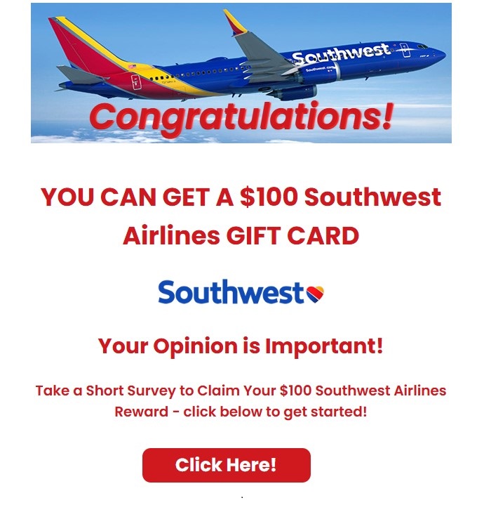 Congratulations! A Southwest Airlines reward has arrived!