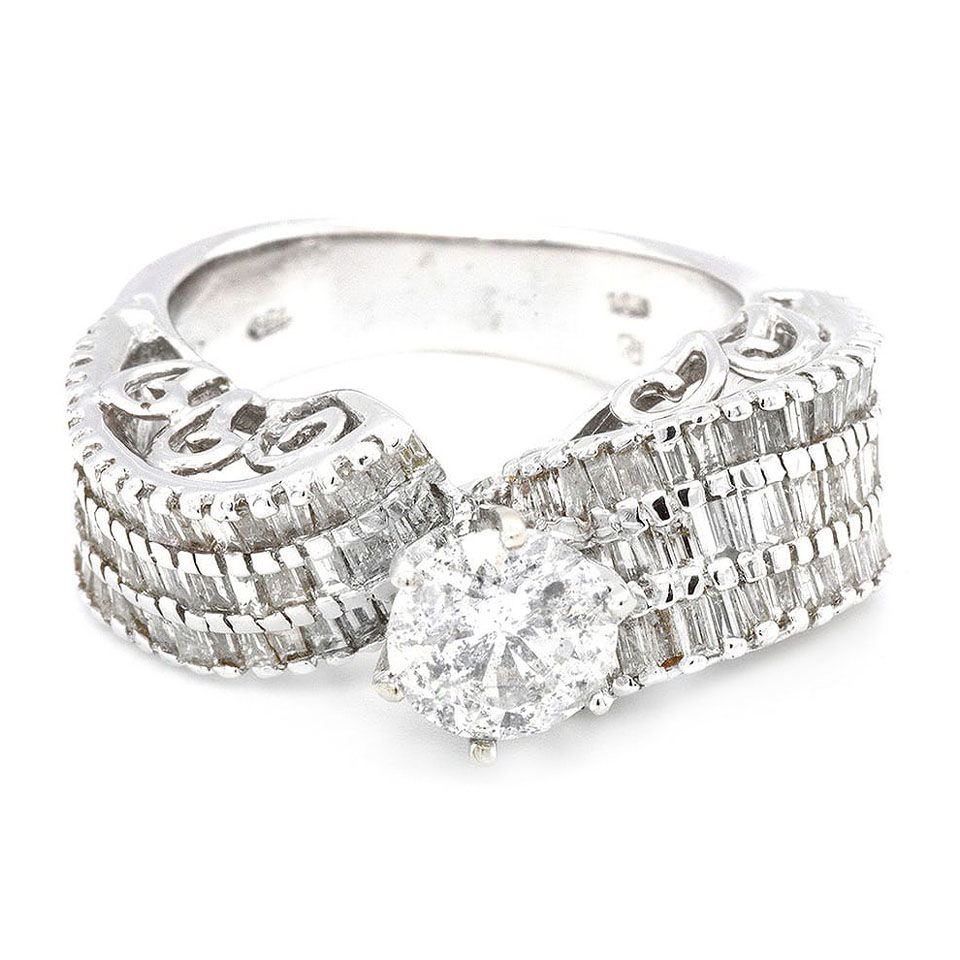 18K White Gold Ladies Ring with 1.25ct Center and 2.11ct Adjacent Diamonds